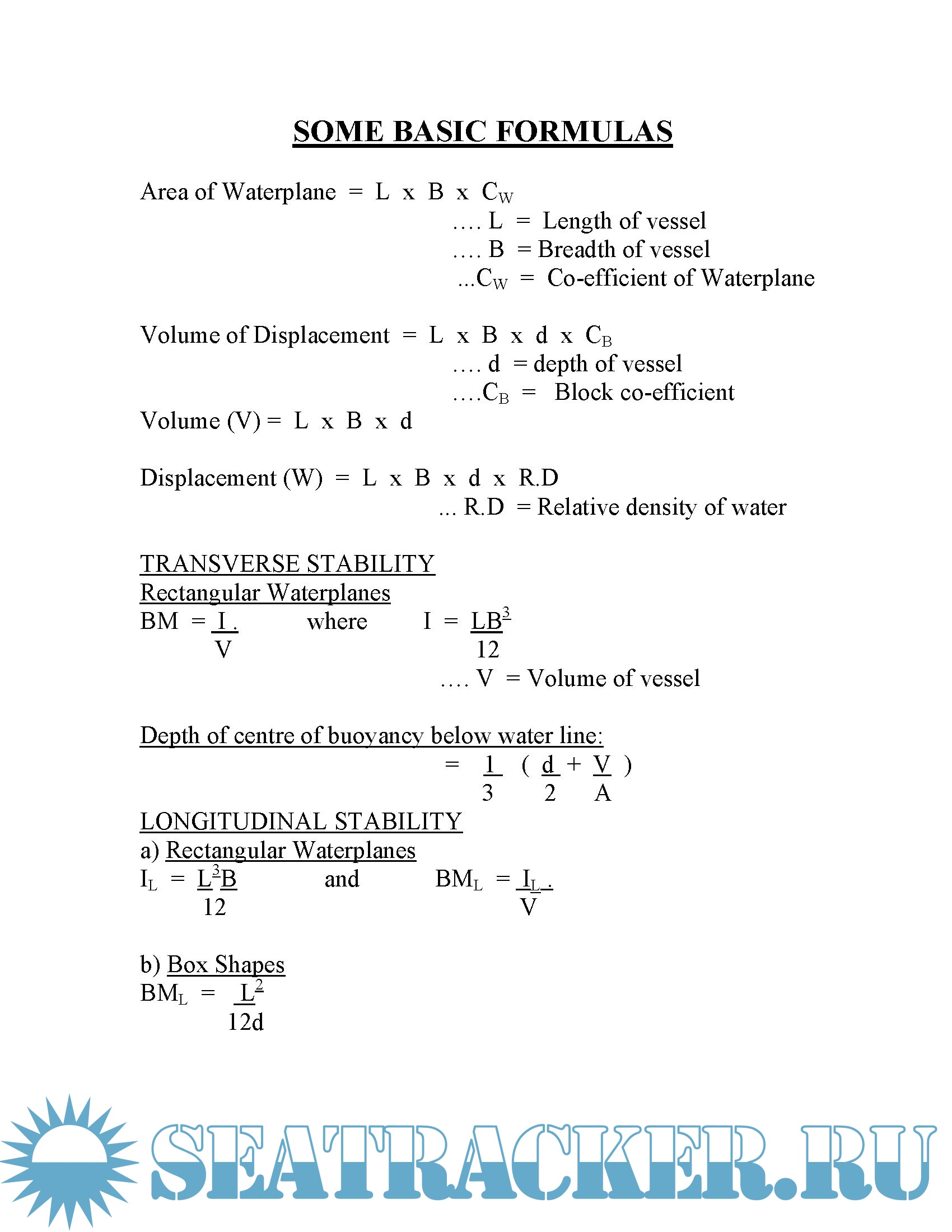 Description: useful Ship Stability Formulae : Part 1