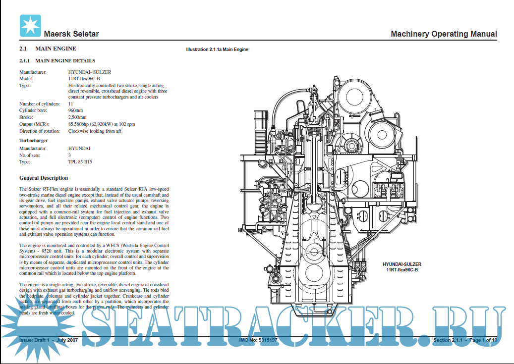 Container MV Maersk Seletar - IMO 9315197 - Machinery Operating Manual