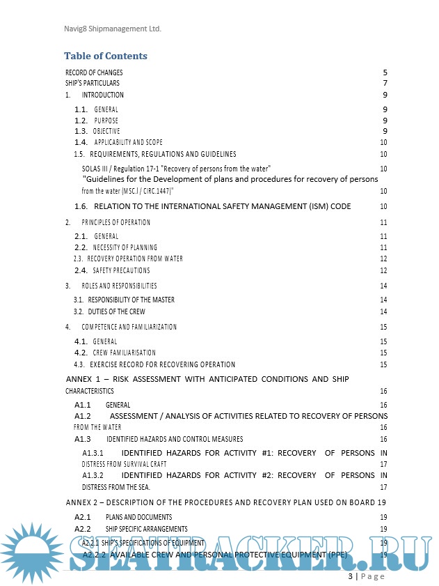 The scope of this manual is to describe t\he procedures of recovery of persons from the water with respect to the proposed regulatory framework and existing SMS policies of the Management company.
