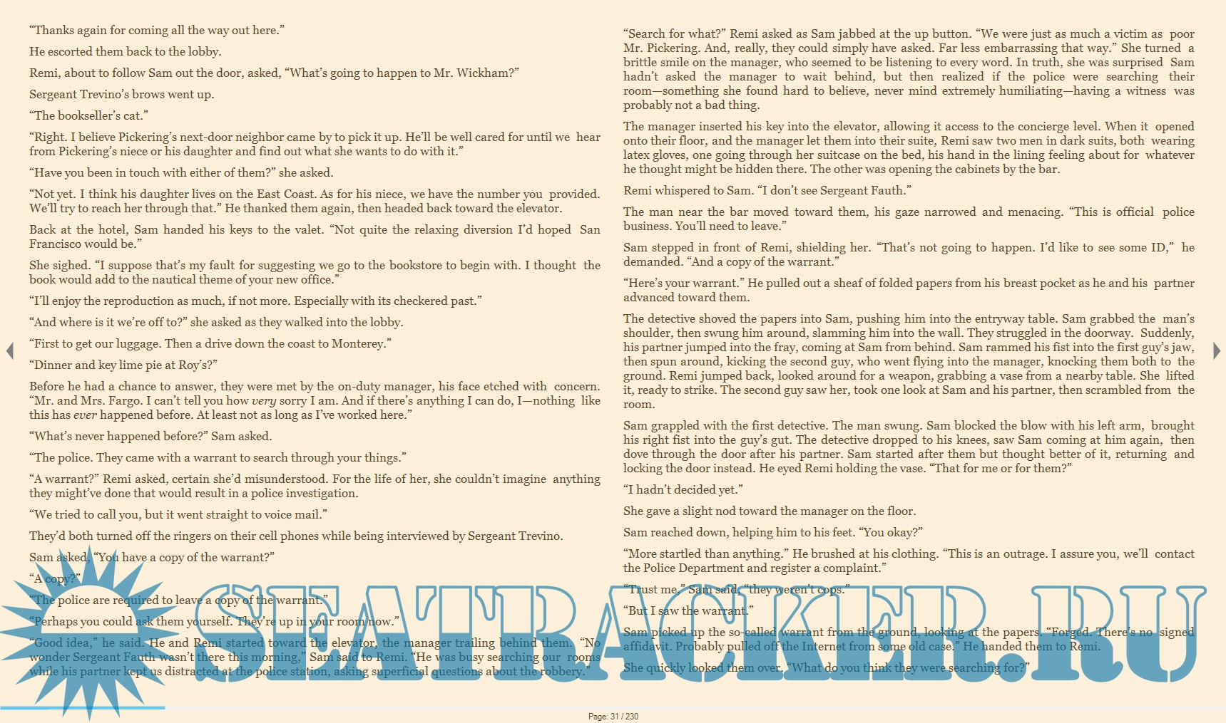 Year: 2016 Language: english Author: Clive Cussler and Robin Burcell Genre: Fiction Publisher: G.P. Putnam's Sons ISBN: 9780399183997 Format: EPUB Quality: eBook Pages count: 400 Description: From Arizona to Jamaica to England, husband-and-wife treasure-hunting team Sam and Remi Fargo unravel another ancient and cryptic mystery. An 800-year-old treasure . . . An ancient cypher wheel . . . A brutal murder . . . And a man who will stop at nothing to claim what he considers rightfully his. Treasure-hunting couple Sam and Remi Fargo have gone on impossible missions before and faced many perils, but never have they faced an adversary as determined as the one before them now. The battle will take them halfway around the world, and at its end will be either one of the most glorious finds in history-or certain death.