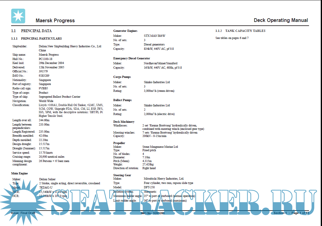 OPT Maersk Progress- IMO 9283289 - Deck Operating Manual