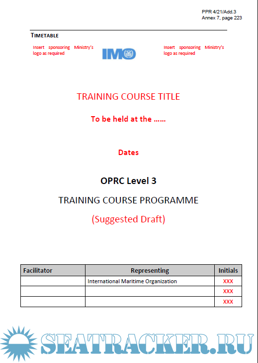 Description: The IMO OPRC Model training courses have been developed to address all general aspects of oil spill planning, response and management. They are intended to provide guidance on the general framework and content a training course may adopt to meet the specific needs of the participants, country or region in which the course is to be delivered. The courses have been developed by IMO to aid the Member States to the International Convention on Oil Pollution, Preparedness, Response and Co-operation (OPRC), 1990, in meeting their obligation to provide a programme of training for relevant personnel in cooperation with interested governments and industry.
