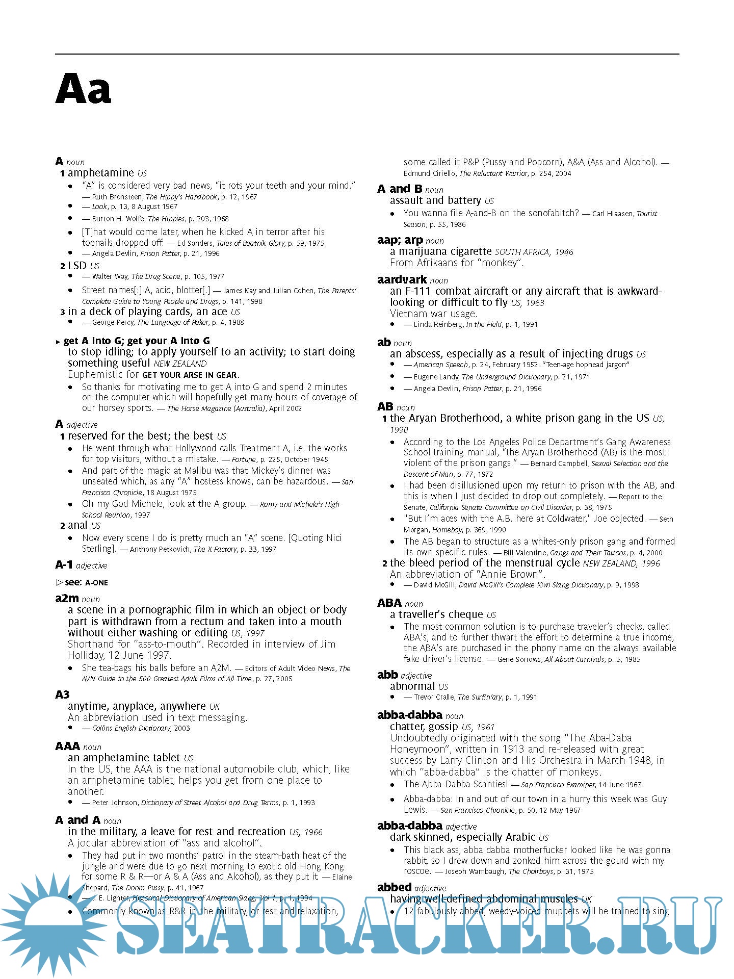 • unprecedented coverage of World English, with equal prominence given to American and British English slang, and entries included from Australia, New Zealand, Canada, India, South Africa, Ireland, and the Caribbean
