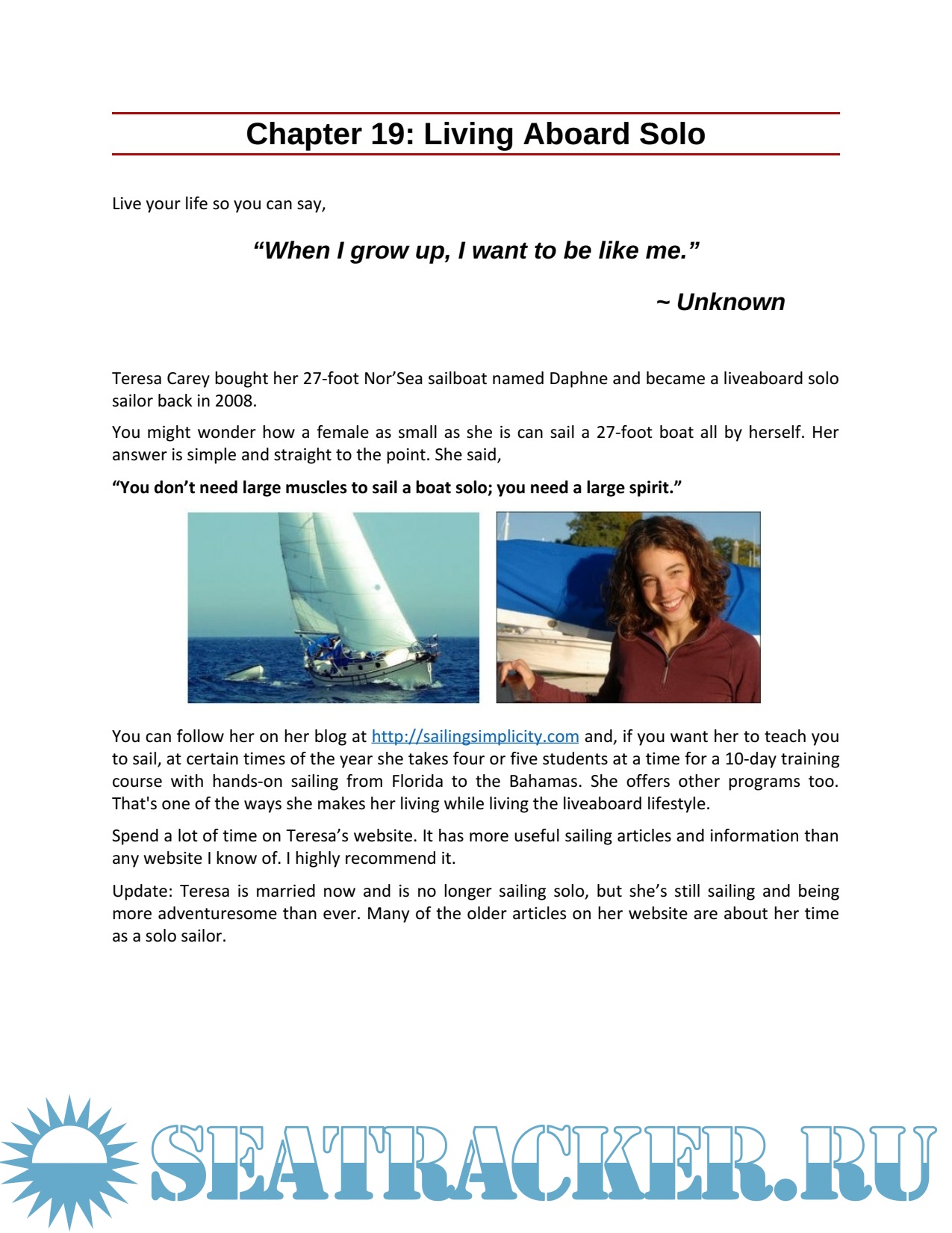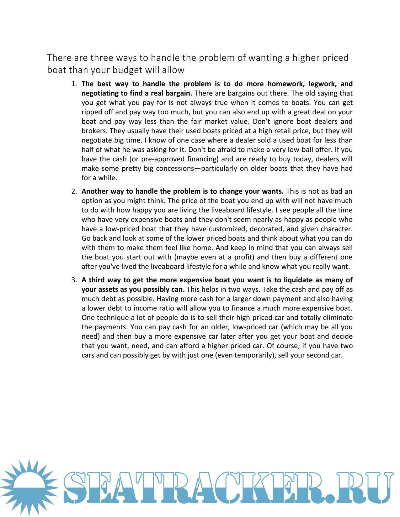 P.S. If you’re even remotely thinking about living on a boat, this is one book you must read. The chapters on how to buy a boat and negotiate the best price will save you thousands.