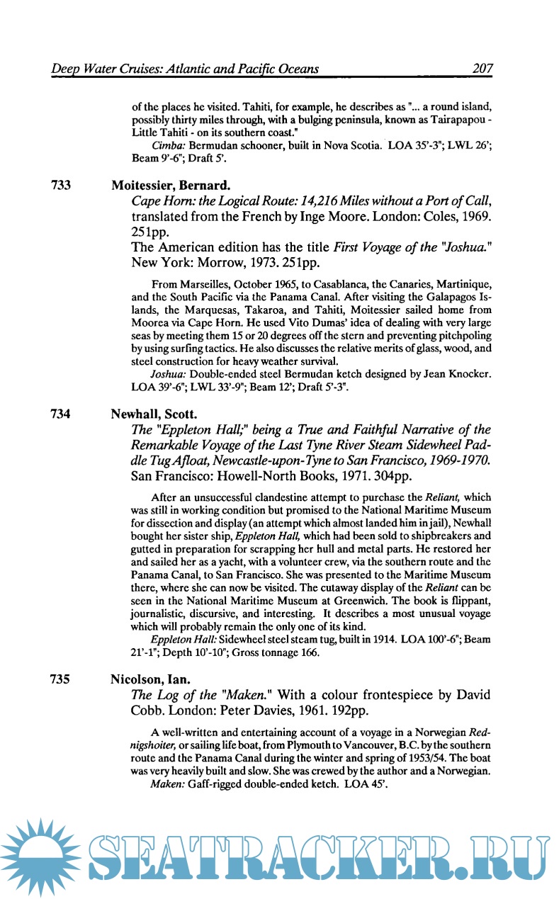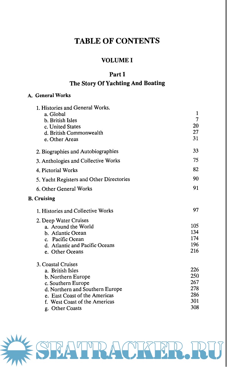 Description: A comprehensive guide to books in English recounting the adventures of amateur sailors upon the waters of the world in yachts, boats, and other devices and including works on the arts and sciences of cruising, racing, seamanship, navigation, design, building, etc., from the earliest writings through 1986