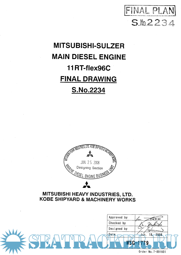 Main engine final drawings. APL Russia, 8110 TEU, Sulzer 11RT-flex96C