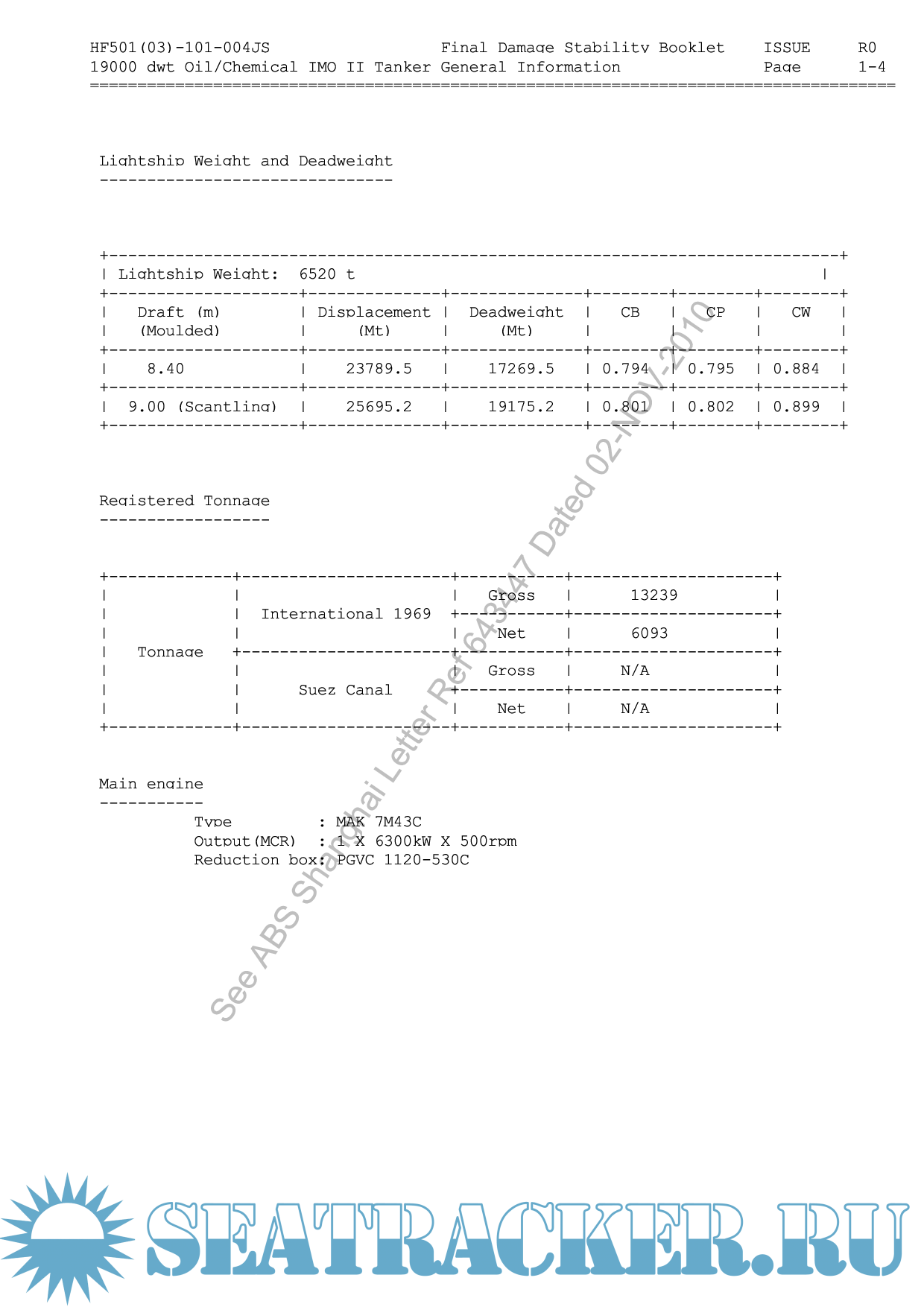 Mv Harbour Probress - Damage Stability Booklet