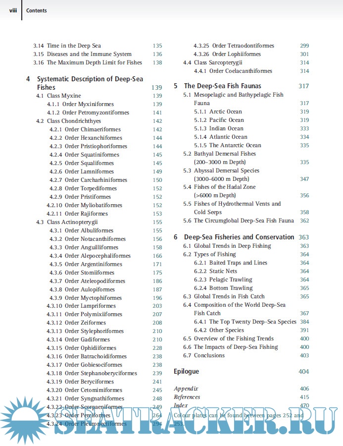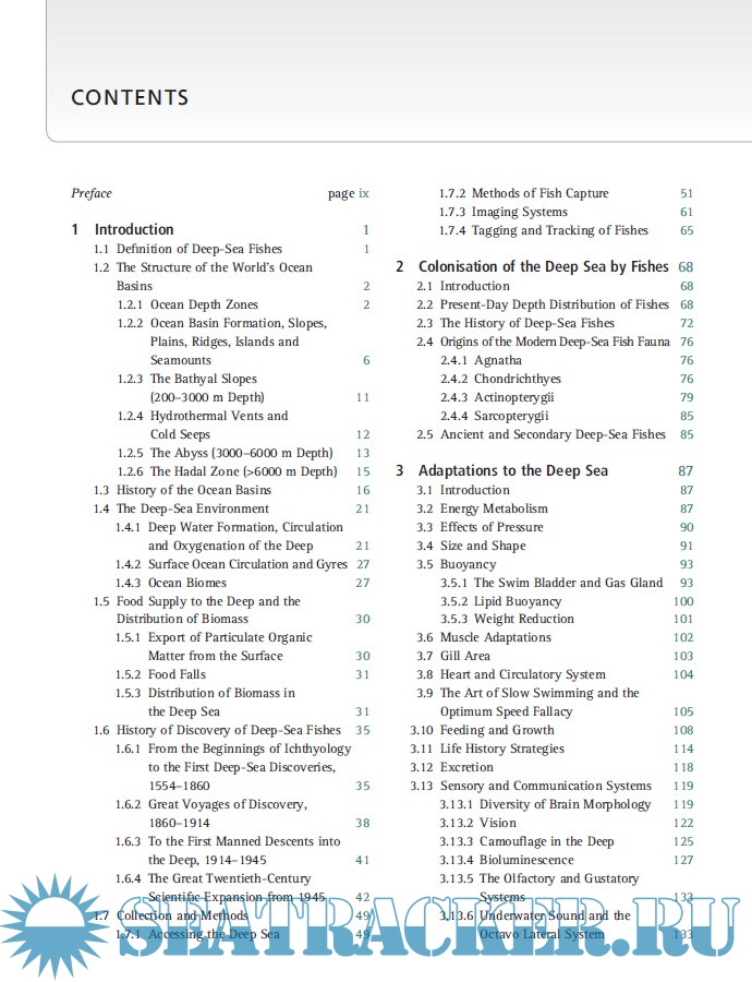 Year: 2017 Language: english Author: Imants G. Priede Publisher: Cambridge University Press ISBN: 978-1-107-08382-0 Format: PDF Quality: eBook Pages count: 514 Description: The technological advances of the last twenty years have brought huge advances in our understanding of the deep sea and of the species inhabiting this elusive and fascinating environment. Synthesising the very latest research and discoveries, this is a comprehensive and much-needed account of deep-sea fishes. Priede examines all aspects of this incredibly diverse group of animals, reviewing almost 3,500 species and covering deep-sea fish evolution, physiology and ecology as well as charting the history of their discovery from the eighteenth century to the present day. Providing a global account of both pelagic and demersal species, the book ultimately considers the effect of the growing deep-sea fishing industry on sustainability. Copiously illustrated with explanations of the deep-sea environment, drawings of fishes and information on how they adapt to the deep, this is an essential resource for biologists, conservationists, fishery managers and anyone interested in marine evolution and natural history.