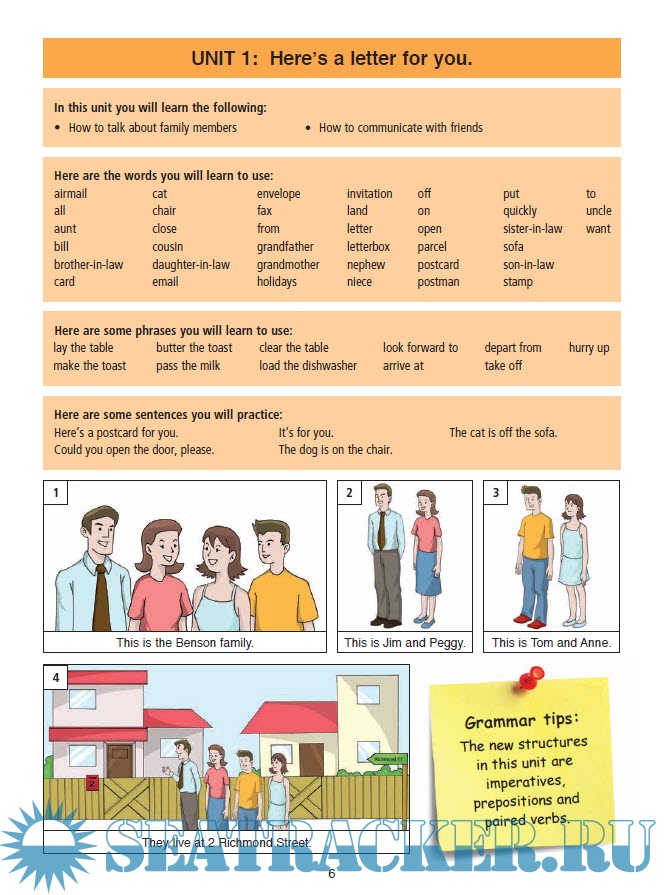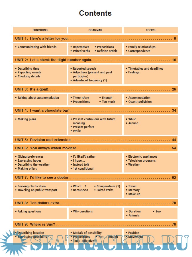 English Made Easy, Volume 2 consists of a total of 20 units arranged in groups of five. The first four units present language and provide learners the opportunities to practice as they learn. The first page of each unit has a list of all the words and phrases to be learned in that unit, together with a pronunciation guide. At the end of each unit, an entertaining story which uses the language that has just been learned is presented.