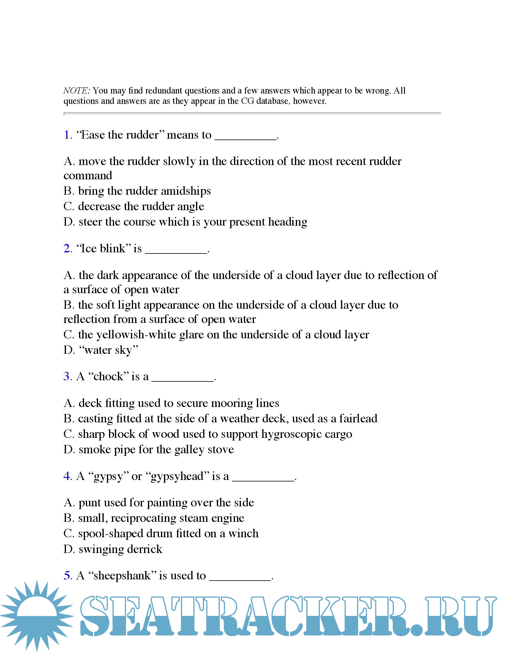 USCG QUESTION PACK (ENVIRONMENT,SAFETY,NAVIGATION,MOTOR,ELECTRICAL,GEN SUB) - USCG [2016, PDF]