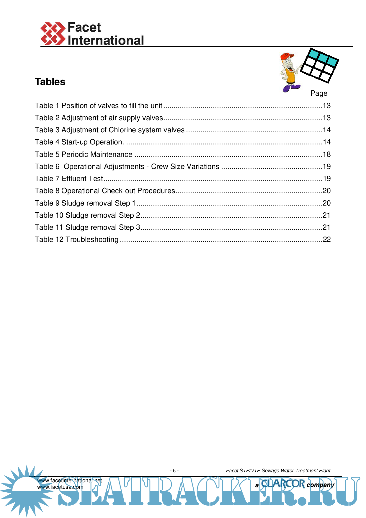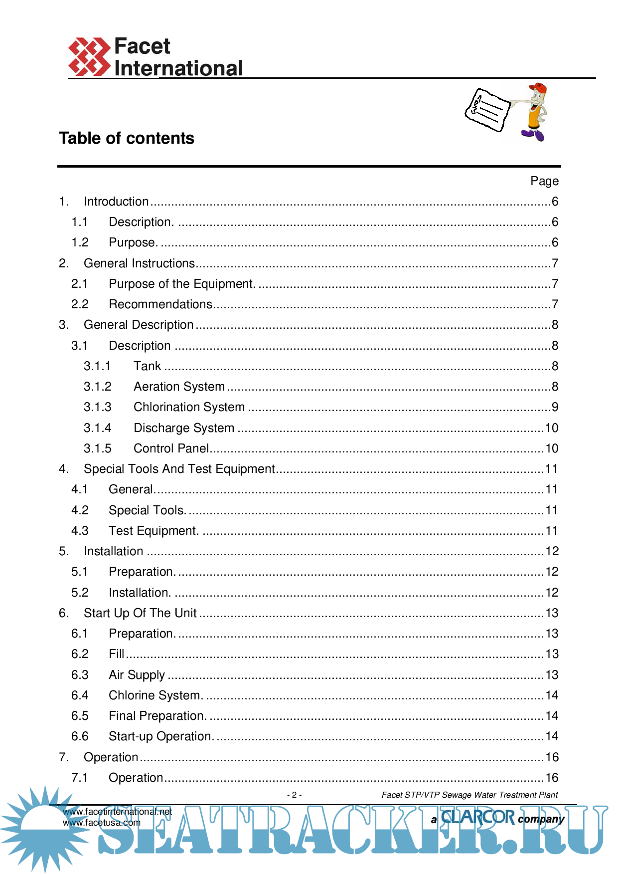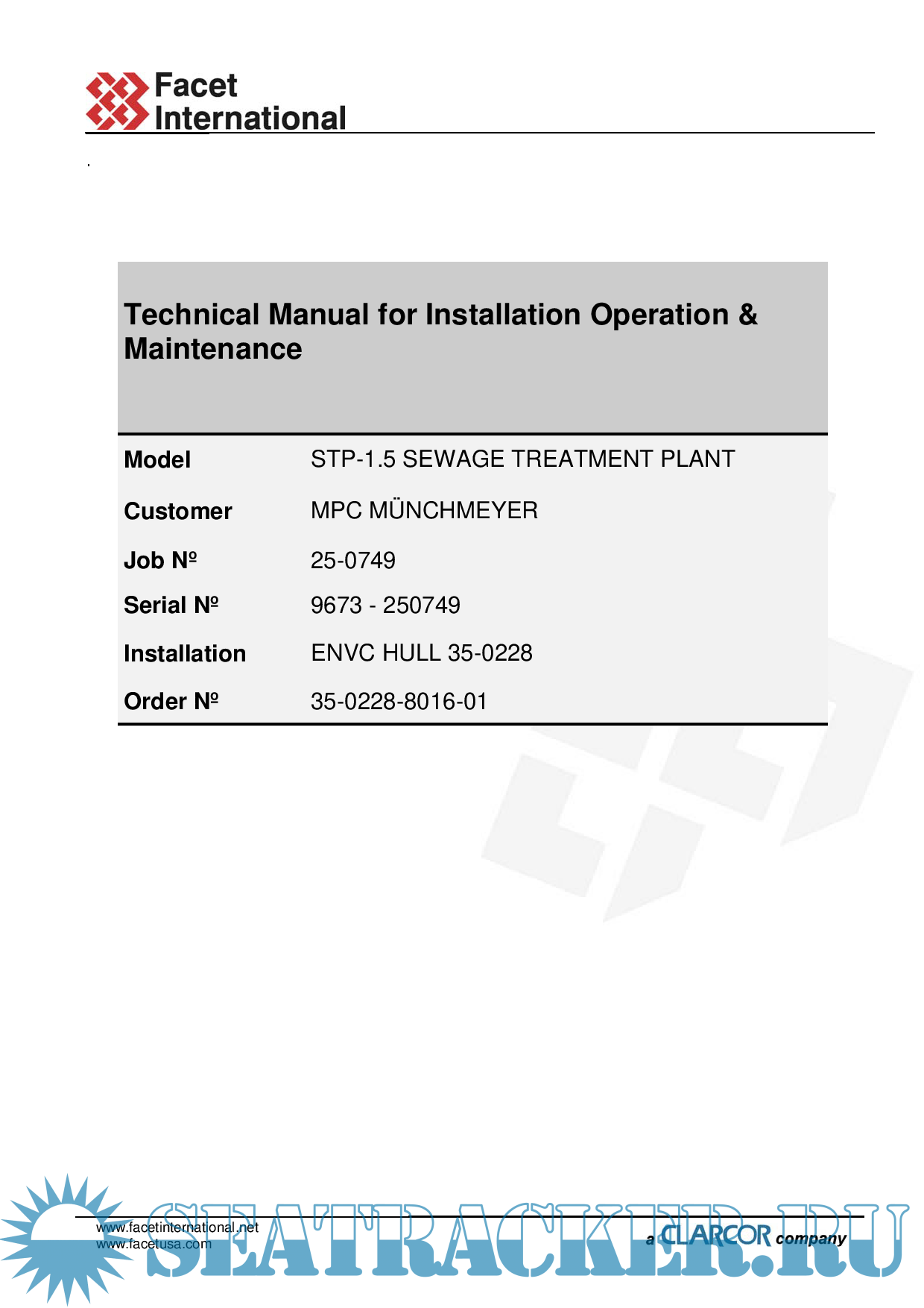Description: This Manual gives instructions for the installation, operation and maintenance of the Sewage Water Treatment Plant Facet STP/VTP