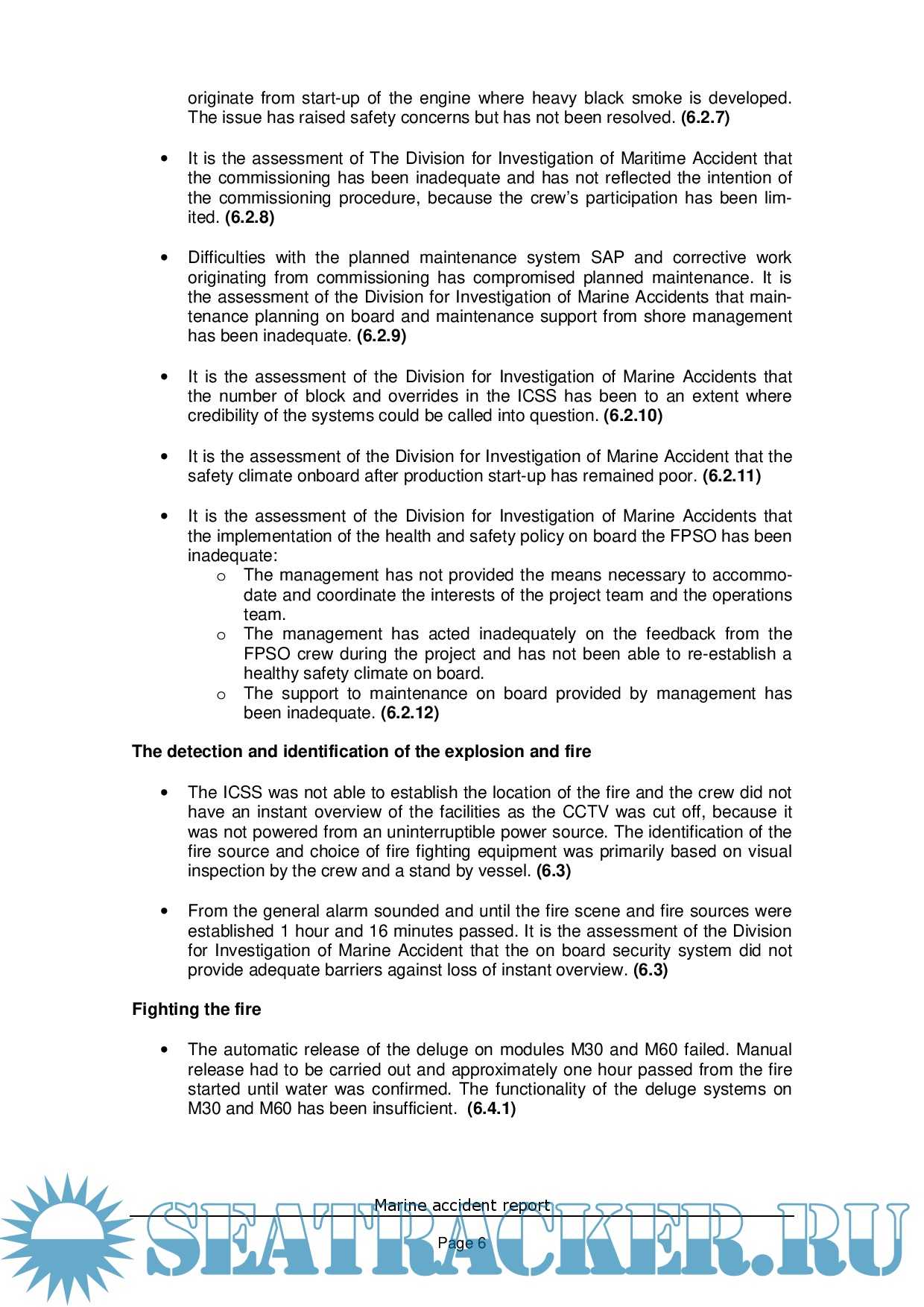 Year: 2009 Language: english Author: Danish Maritime Authority Genre: Documentation Format: PDF Quality: eBook Pages count: 66 Description: MAERSK NGUJIMA-YIN is a FPSO (Floating Production Storage and Offloading). The vessel is operating in the Vincent Field off the cost of North West Australia, Nigaloo National Park. The vessel was originally build in 2000 and served as a VLCC until September 2007. During 2007 and 2008 the vessel was rebuild in Singapore. In June-July 2008 the vessel was commissioned and commenced oil production. At approximately 1250 on the 13th of April 2009 an explosion and subsequent fire occurred in the vessels gas compression module M60 due to a severe breakdown of a 3rd stage HP gas compressor. No persons were injured by the explosion and fire or subsequently during the fire fighting.