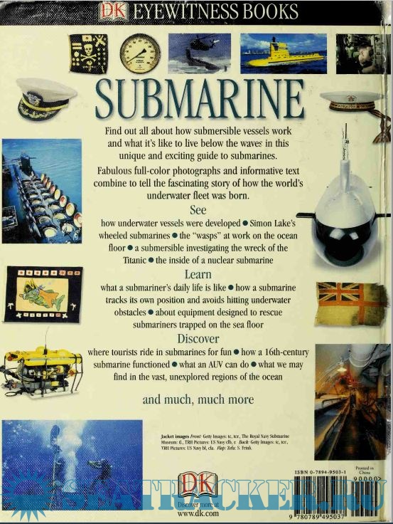 Year: 2003 Language: english Author: Neil Mallard Publisher: Dorling Kindersley ISBN: 9780756667979 Format: PDF Quality: Scanned pages Pages count: 72 Description: Discover the fascinating history of submarines and submersibles, from the first workable designs of the 16th century to Cold War vesselsarmed with nuclear missiles. Find out how these stealthy watercraft work and what it’s like to live below the waves in this unique and exciting guide that was created in association with the U.S. Navy Submarine Force Museum. Colorfulphotographs illustrate the technology used to build and navigate submarines andthe many ways they are used today. Take a look at the inside of a nuclear submarine, learn what a submariner’s daily life is like, discover what we may find in the vast, unexplored regions of the ocean, and much, much more! Discover the secret underwater world of submarines and submersibles