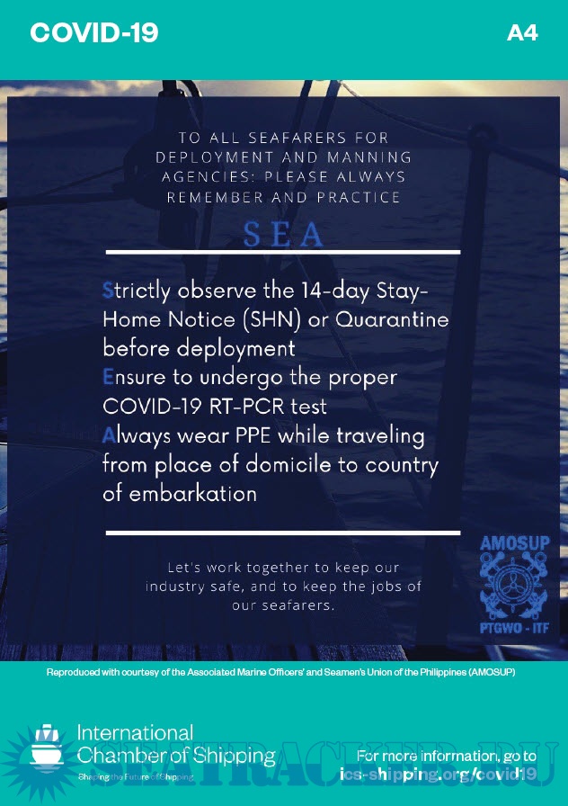 Description: This Guidance has been produced by International Chamber of Shipping (ICS) to help shipping companies and seafarers follow health advice provided by United Nations agencies and others in response to the coronavirus (COVID-19) disease, which has been declared a pandemic by the World Health Organization (WHO), under the WHO International Health Regulations (IHR).
