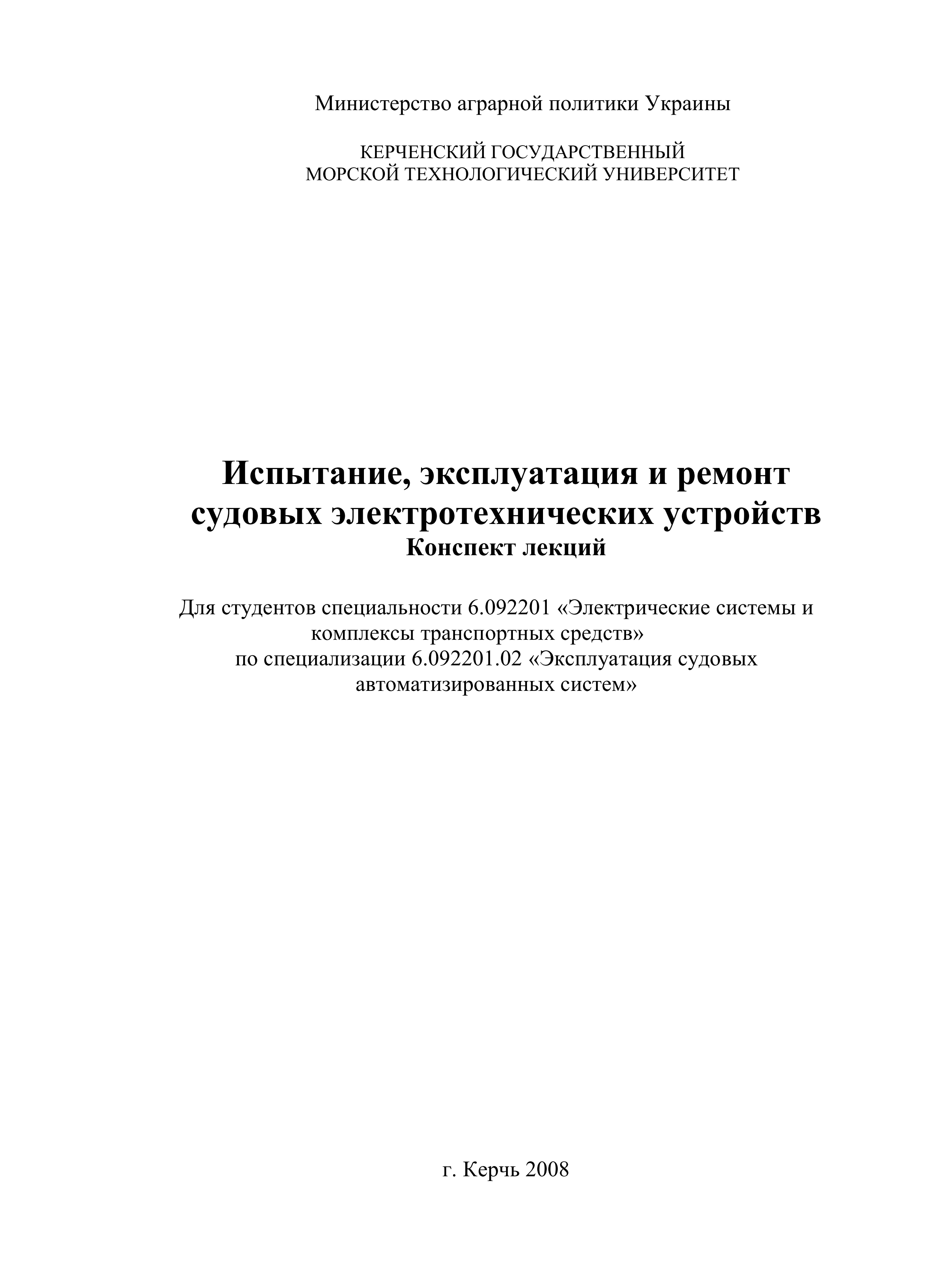 Испытание, эксплуатация и ремонт судовых электротехнических устройств