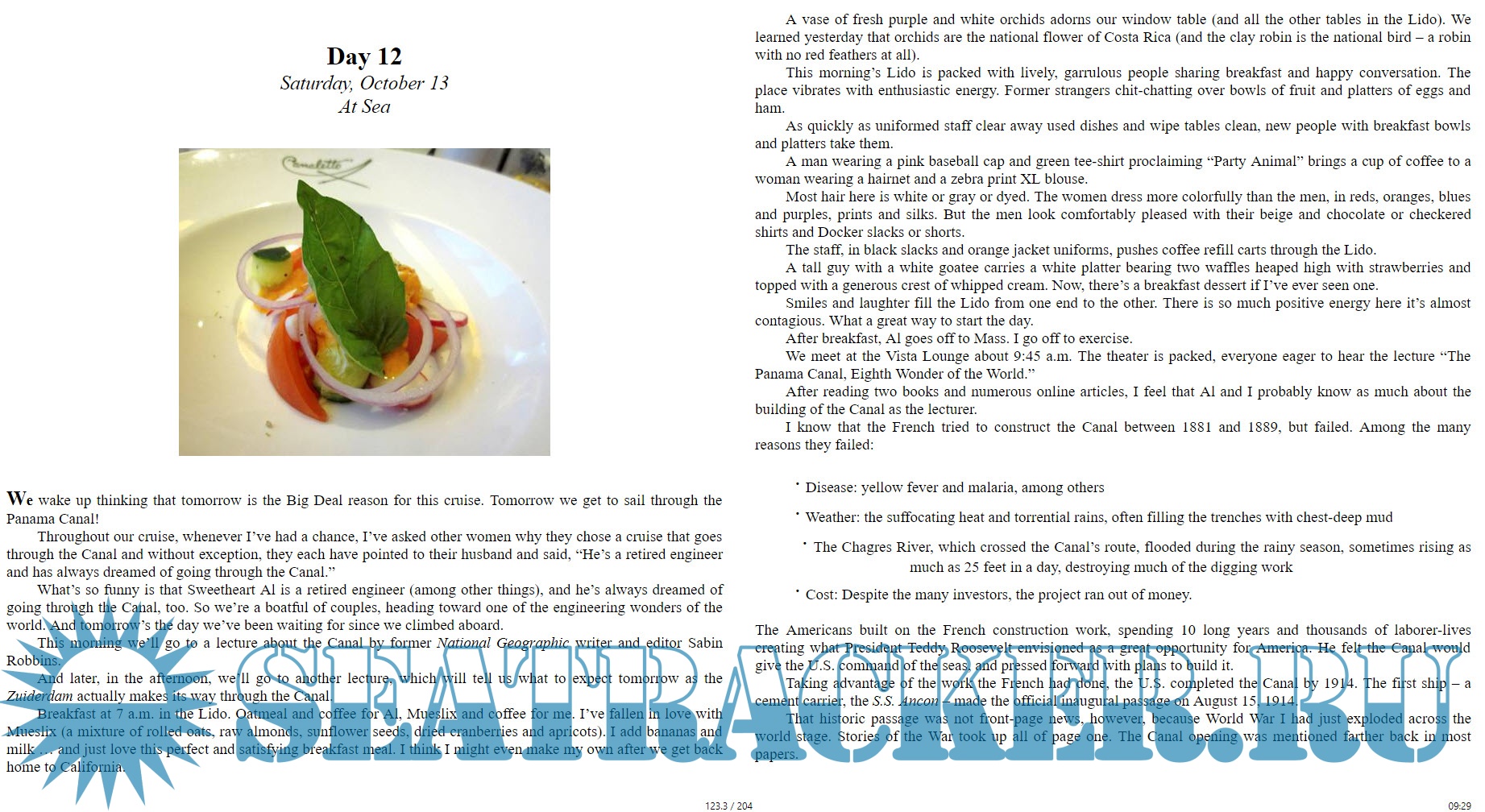 Come along with them as they share intimate details of their 17-day odyssey from San Francisco to Fort Lauderdale via the Panama Canal. Sunny provides the facts. Al adds delicious humor. A perfect recipe for cruise travel fun!