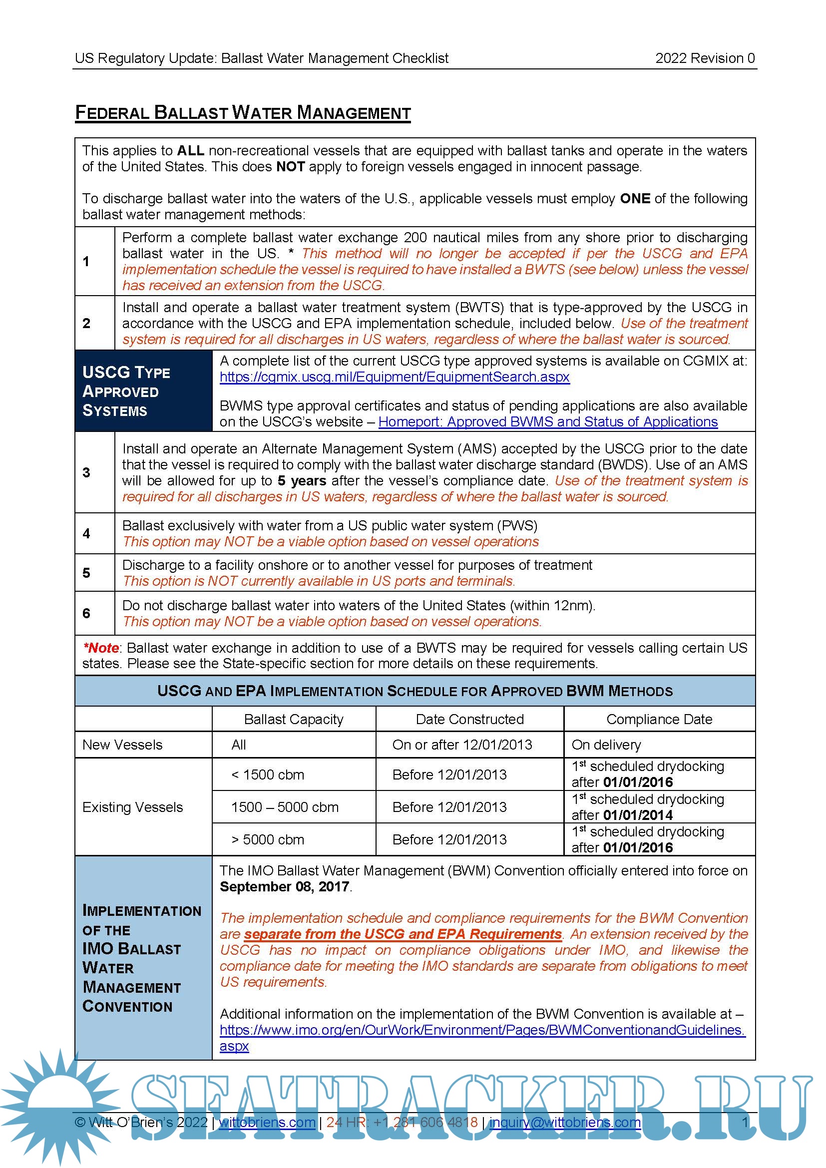 Master's Guide to Compliance in US Waters - Witt O'Brien's [2022, PDF]