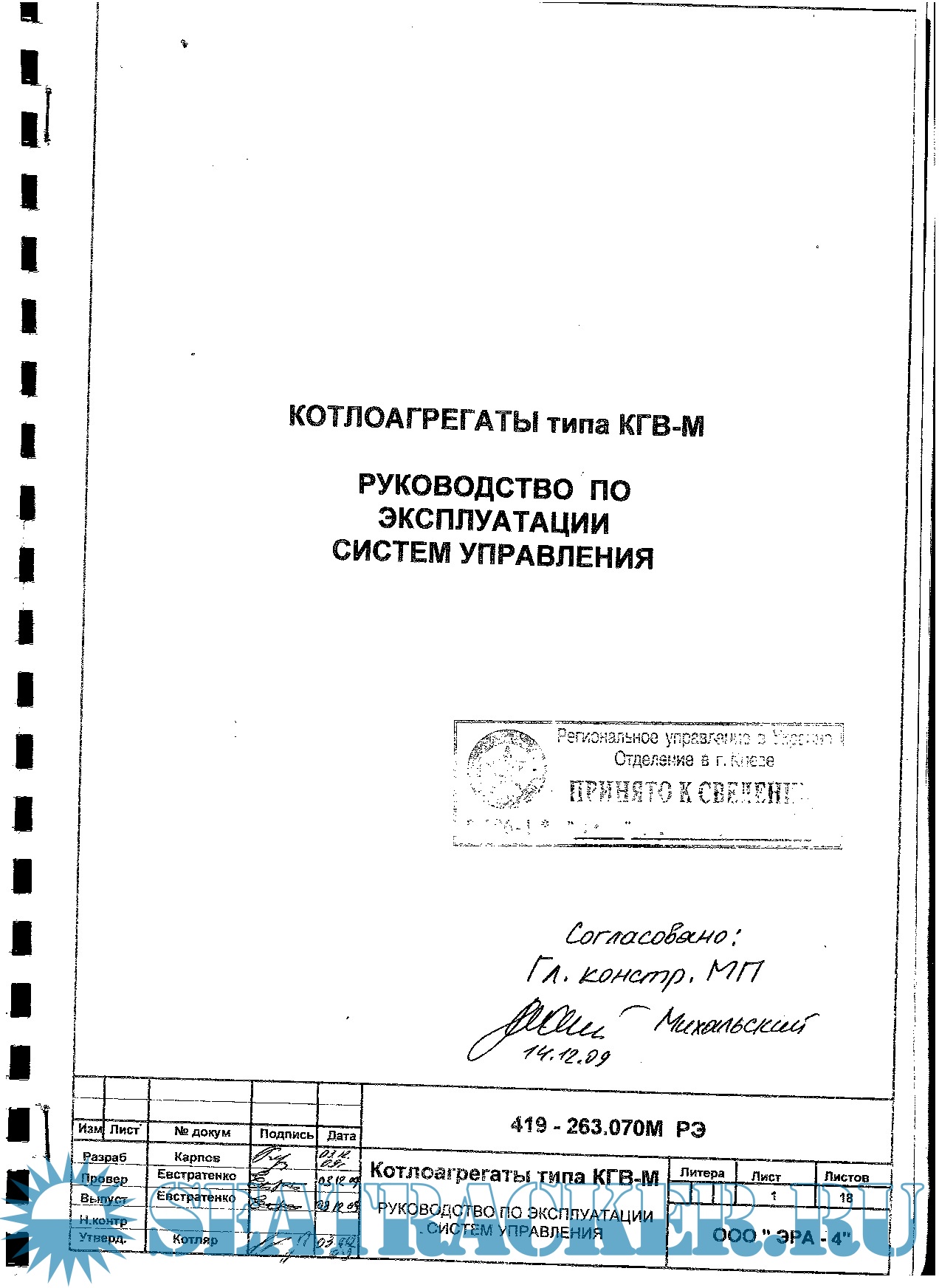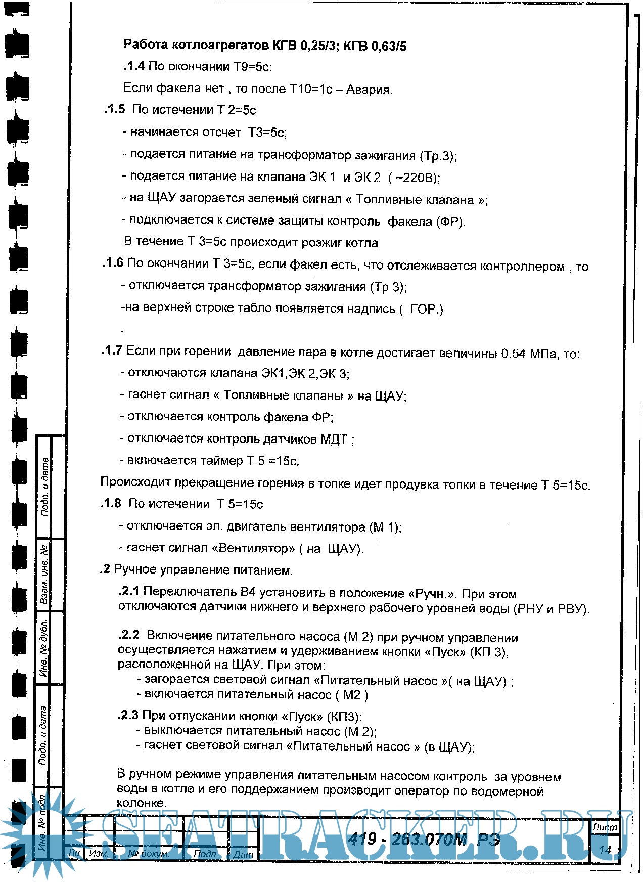 Котлоагрегаты КГВ - М. Руководство по эксплуатации систем управления. 419-263.070М ЭД