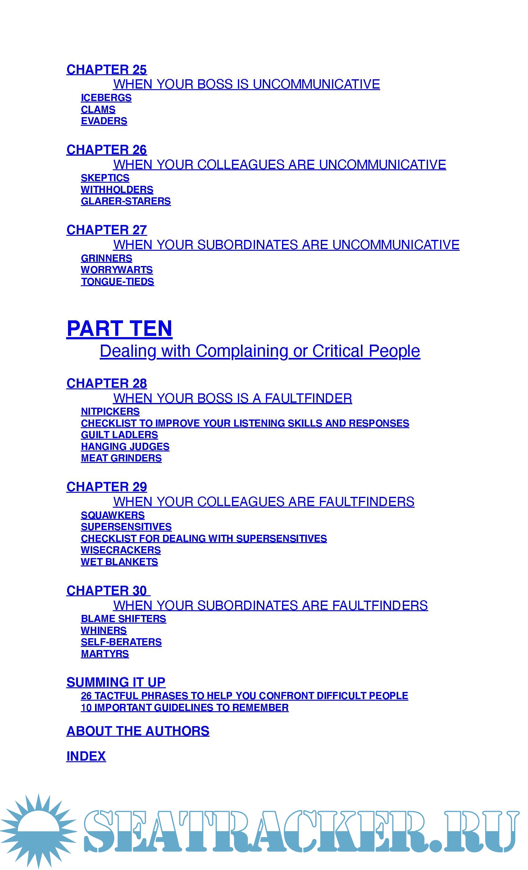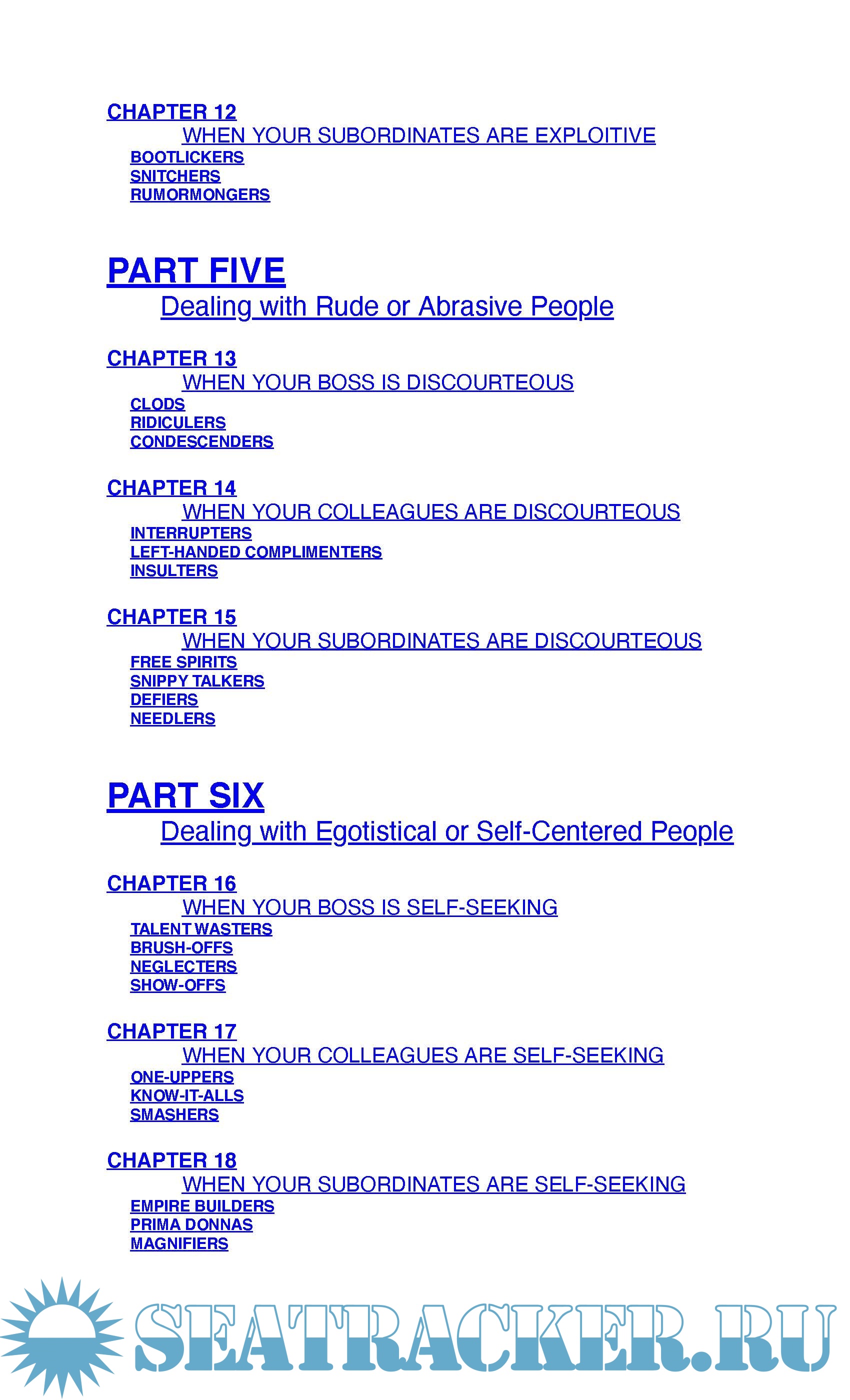 Your work day is filled with them--people who frustrate, impede, maneuver, undermine, plot, connive, and whine. This indispensable guide details specific techniques for handling all of them, with easy-to-follow scenarios for every situation.