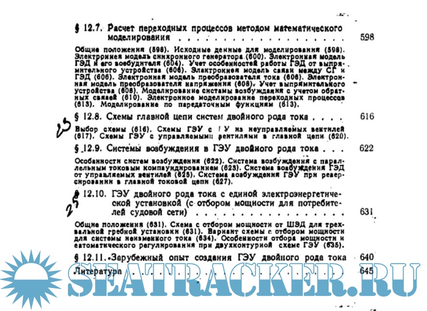 Год выпуска: 1972 Язык: русский Автор: Н. А. Кузнецов, П. В. Куропаткин, А. Б. Хайкин, Н. М. Хомяков Жанр: Учебное пособие Издательство: Судостроение Формат: DjVu Качество: Отсканированные страницы Количество страниц: 656 Описание: Книга "Основы проектирования гребных электрических установок" написана с целью обобщить отечественный и зарубежный опыт, накопленный при проектировании гребных электрических установок (ГЭУ), особенно в отношении их параметров и характеристик; рассмотреть способы обеспечения их надежной и экономичной эксплуатации в условиях установившихся и переменных режимов, а также определить направления совершенствования ГЭУ на базе использования достижений электронной техники и средств автоматического управления. Методы изложения материалов книги разнообразны: здесь дается описание и разбор схем с рекомендациями по их выбору; приводится анализ физических процессов (главным образом переходных), протекающих в различных системах ГЭУ; дается математическое описание статических и переходных процессов и рассматриваются методы их расчета. Авторы сочли необходимым изложить в книге как аналитические и графо-аналитические методы с учетом и без учета основных нелинейностей, так и методы математического моделирования с использованием аналоговых вычислительных машин. Значительное место в книге отведено изложению инженерных методов расчета статических и переходных процессов для типовых схем ГЭУ постоянного и переменного тока. Приведенные методы расчета многократно апробированы практикой проектирования ГЭУ и проверены многочисленными натурными испытаниями. Обстоятельно изложены материалы по перспективным системам ГЭУ, в частности по ГЭУ двойного рода тока и ГЭУ со статическими преобразователями частоты. Авторы обобщили накопленный опыт проектирования ГЭУ двойного рода тока с неуправляемыми вентилями и намечают пути использования управляемых вентилей и статических преобразователей частоты ГЭУ. В книге проведен разбор многочисленных схем ГЭУ, находящихся в эксплуатации и перспективных, а также дана сравнительная оценка достоинств и недостатков различных систем и схем главного тока возбуждения, управления, защиты и контроля. Это дает возможность специалистам, работающим в области проектирования, учесть предложенные рекомендации и правильно выбрать схему в соответствии с классом судна и специальными требованиями.