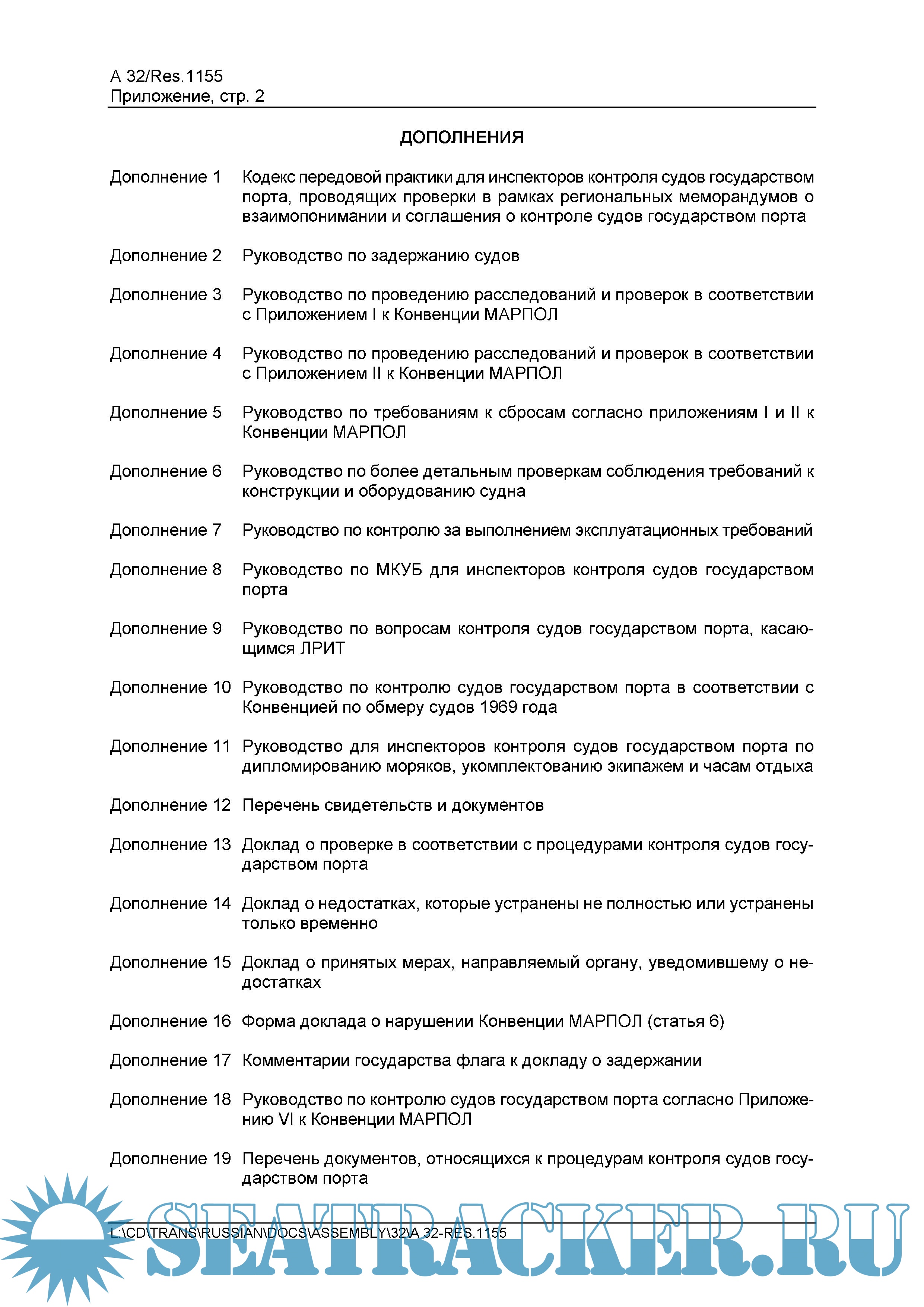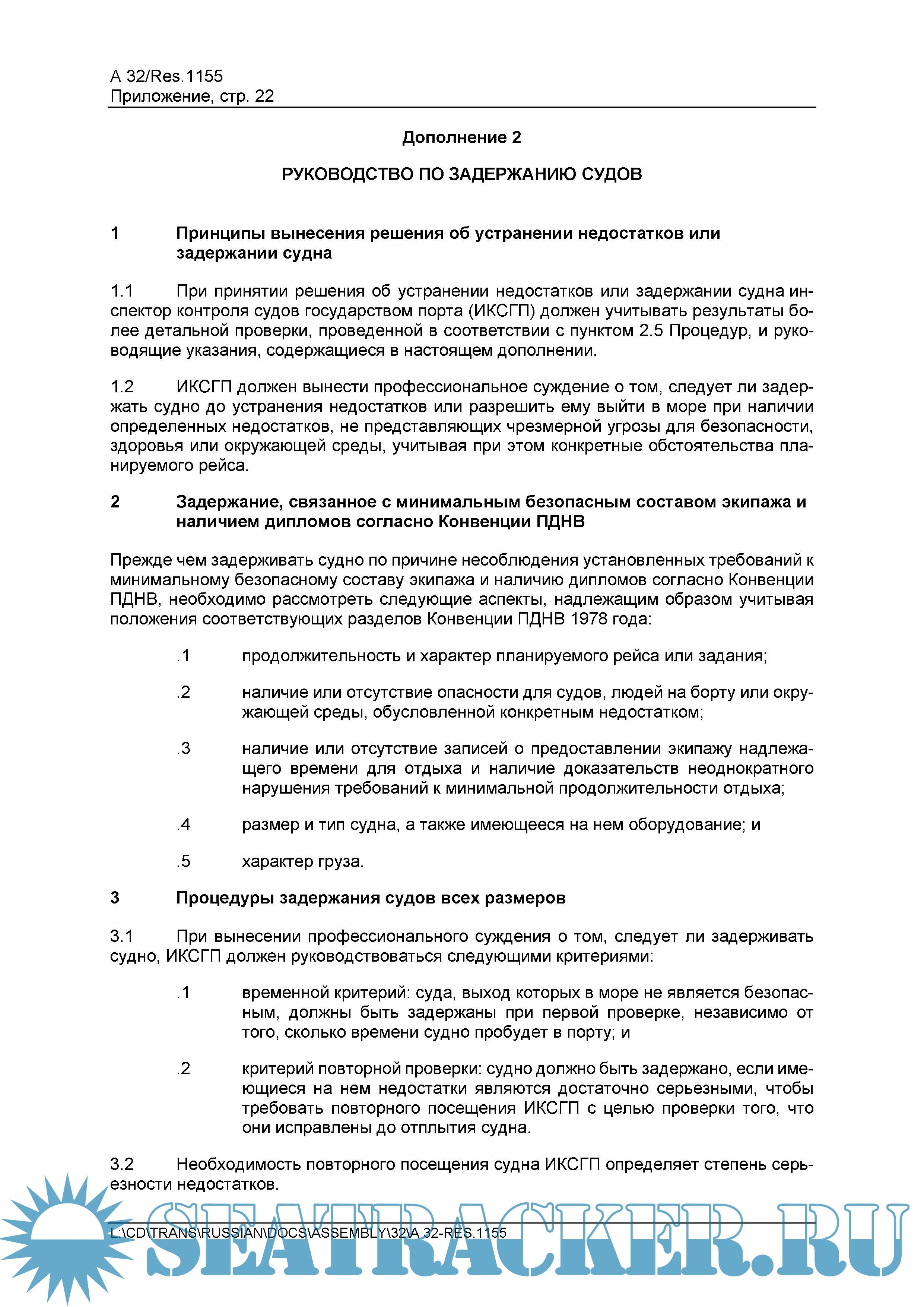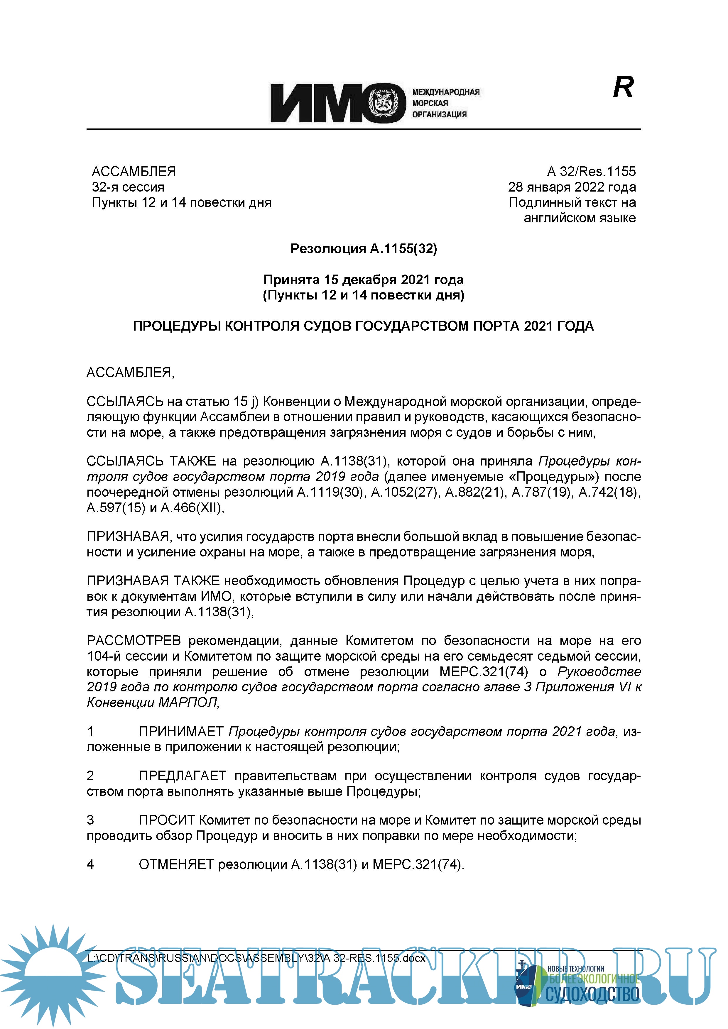ПРОЦЕДУРЫ КОНТРОЛЯ СУДОВ ГОСУДАРСТВОМ ПОРТА 2021 ГОДА / Procedures for Port State Control, 2021. IMO Resolution A.1155(32).