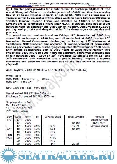 Solved Numericals (2018-2016) - Past Question Papers Mercantile Marine Department (MMD), India Examinations for Advanced Ship Management (ASM)