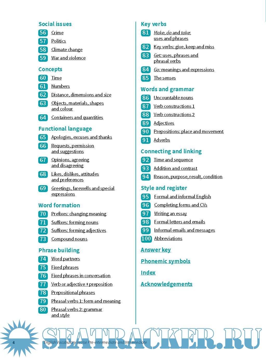 Vocabulary explanations and practice for pre-intermediate and intermediate level (B1) learners of English. Perfect for both self-study and classroom activities. Quickly expand your vocabulary with 100 units of easy to understand explanations and practice exercises. Be confident about what you are learning, thanks to Cambridge research into how English is really spoken and written, and get better at studying by yourself, with units on learning vocabulary, personalised practice and an easy to use answer key.