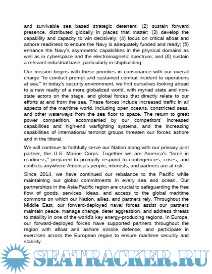 diplomacy and relief efforts. We operate worldwide, in space, cyberspace, and throughout the maritime domain. The United States is and will remain a maritime nation, and our security and prosperity are inextricably linked to our ability to operate naval forces on, under and above the seas and oceans of the world.