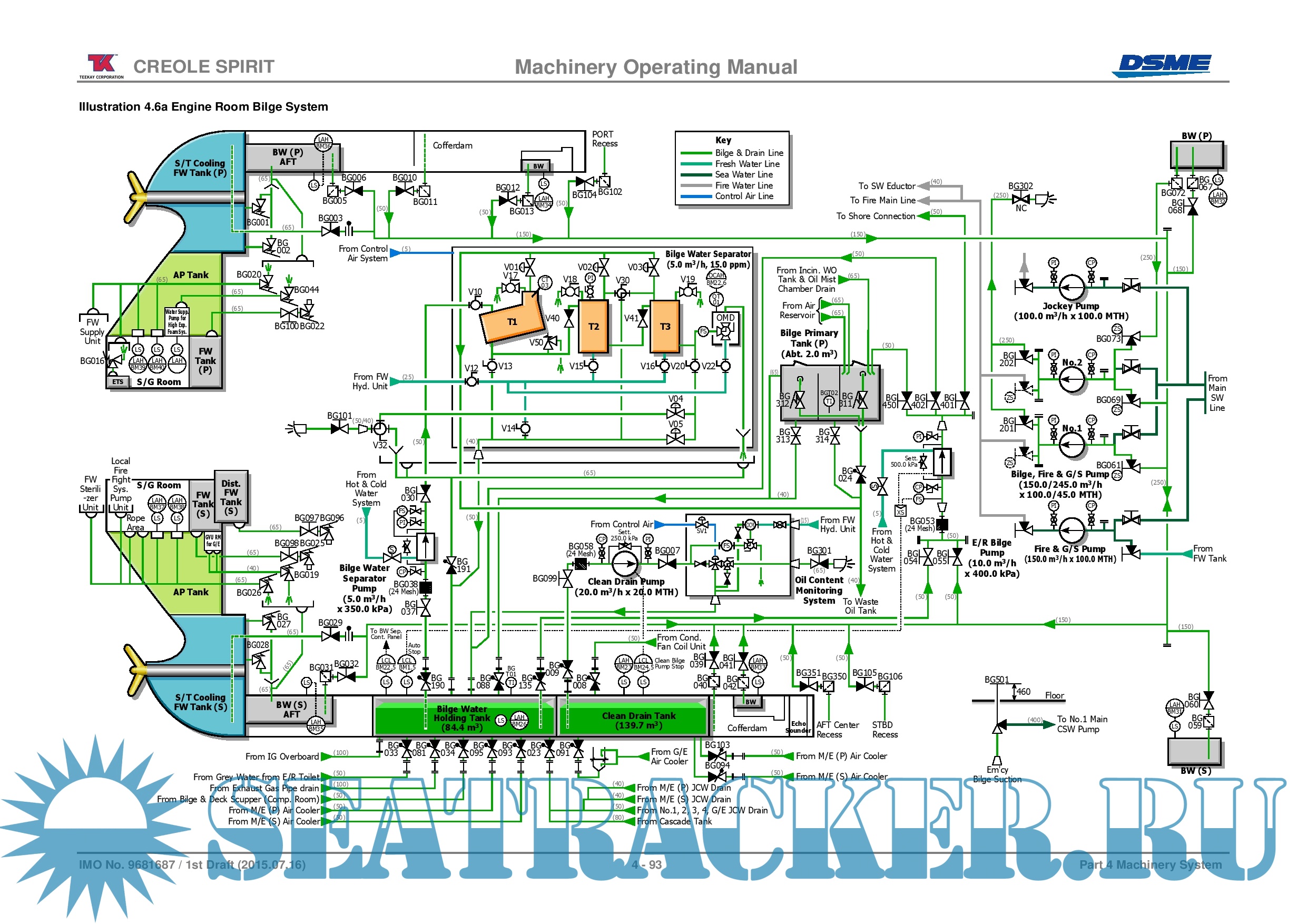 Year: 2015 Language: english Author: DSME Genre: Manual Format: PDF Quality: eBook Pages count: 308 Description: Shipbuilder: Daewoo Shipbuilding and Marine Engineering Co., Ltd. Okpo Shipyard, Republic of Korea Yard Number: 2407 Ship Name: CREOLE SPIRIT Delivered: 2015.10.28 Flag: Bahamas Classification: Det Norske Veritas - +1A1, Tanker for Liquefied Gas, Ship type 2G (-163°C, 500 kg/m3, 0.70 bar), NAUTICUS(Newbuilding), COAT-PSPC(B), E0 , NAUT-OC, TMON, BIS, CLEAN, BWM- T, GAS FUELLED Main Engines Type: MAN B&W 5G70ME-C9.2-GI x 2 set (Derated) - MCR: 12,520 kW x 69.1 rpm, each - NCR: 11,270 kW x 66.7 rpm, each Service Speed: 19.5 knots at design draft of 11.5m on even keel with main engines running at 90% MCR (22,540 kW) with 21% sea margin