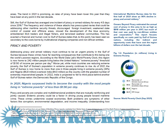 This report shows that this perspective is misguided. Gulf of Guinea nations are facing significant direct, indirect, and opportunity costs related to the presence of piracy and armed robbery. These costs occur on a scale that is thousands of times greater than what is paid to pirates in ransoms each year.