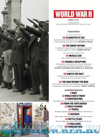 Description: World War II magazine covers every aspect of history's greatest modern conflict with vivid, revealing, and evocative writing from top historians and journalists. Each issue provides a lively mix of stories about soldiers, leaders, tactics, weapons, and little-known incidents of the war, including riveting firsthand battle accounts and reviews of books, movies, and video games. And the most authoritative magazine on the war features a striking design that highlights rare, archival photographs and detailed battle maps to convey the drama and excitement of the most famous battles and campaigns.