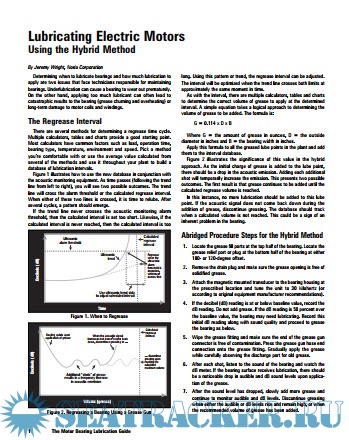 Description: Determining when to lubricate bearings and how much lubrication to apply are two issues that face technicians responsible for maintaining bearings. Underlubrication can cause a bearing to wear out prematurely. On the other hand, applying too much lubricant can often lead to catastrophic results to the bearing (grease churning and overheating) or long-term damage to motor coils and windings.