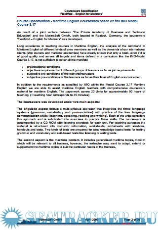 Year: 2009 Language: english Author: MarineSoft Genre: Training courses Publisher: MarineSoft Edition: April Format: PDF Quality: eBook Pages count: 20 Description: A training course based on IMO model course 3.17. Teacher's version.