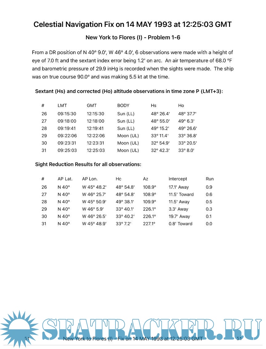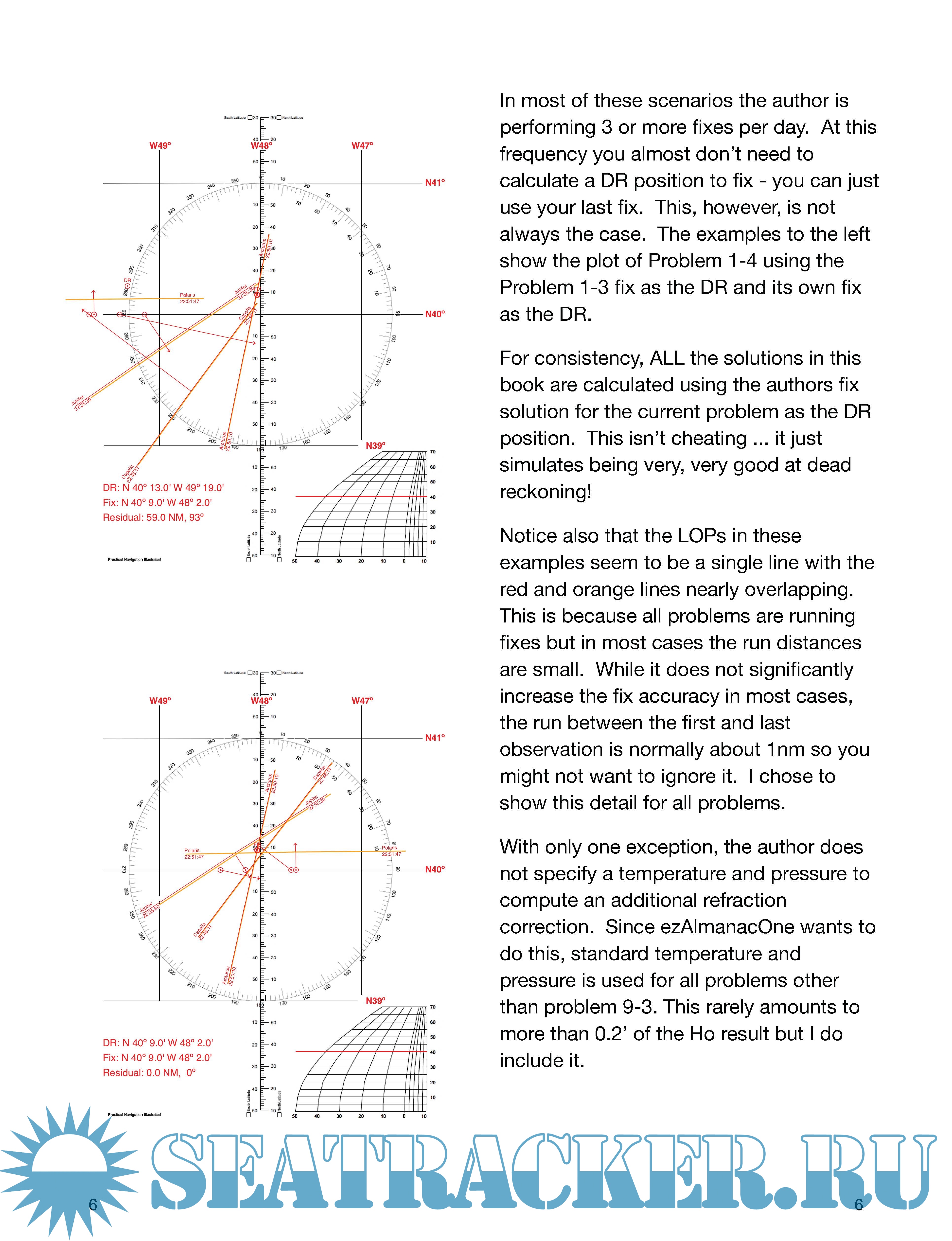 That being said, Mr. Gray gives absolutely NO information on HOW to solve the problems. His book is like a celestial navigation test with all of the problem details and an answer key. The answer key consists of the expected fix and a statement about its reliability. If your solution doesn’t match, where did you go wrong?