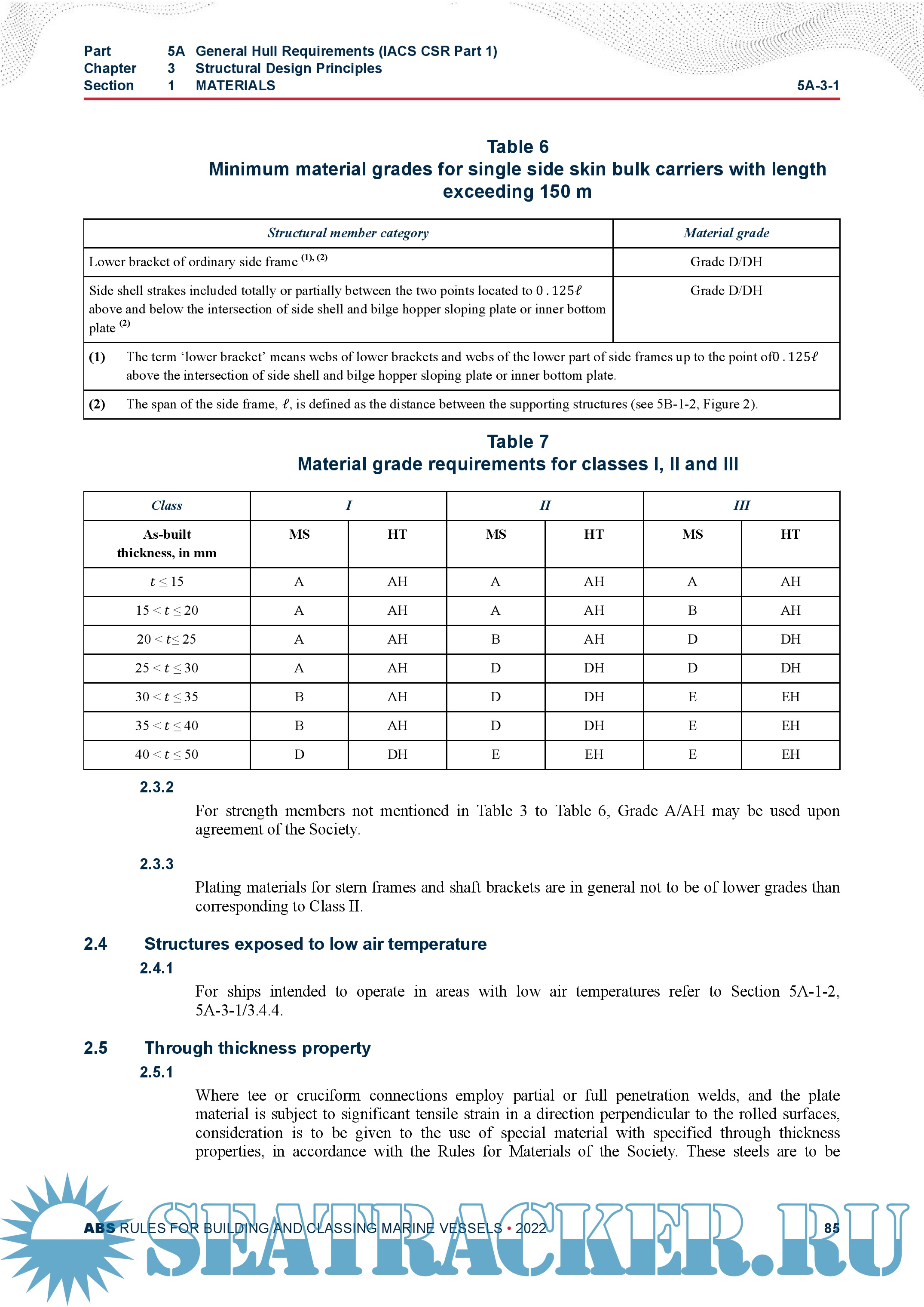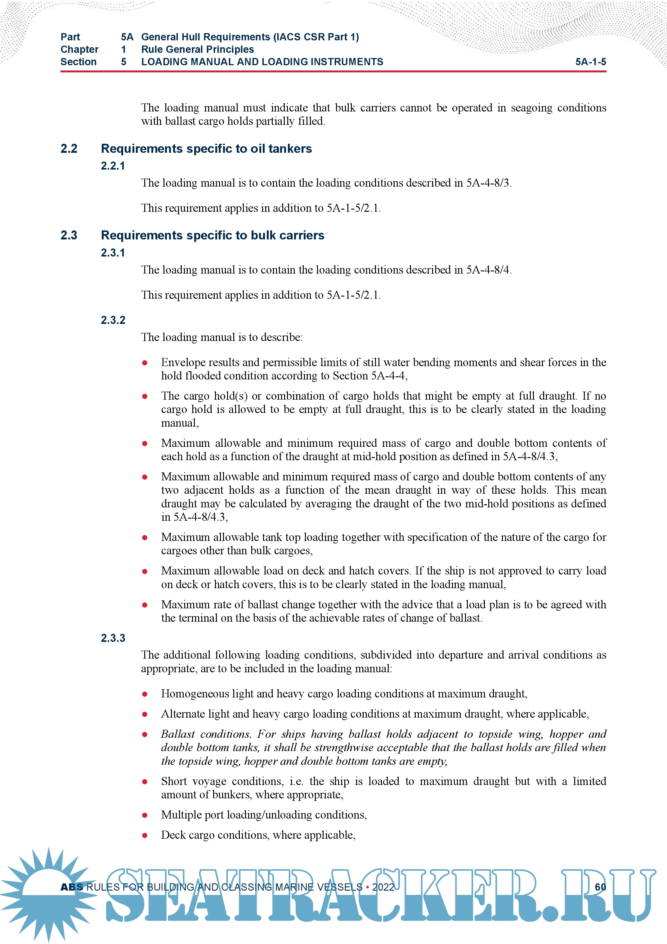 Description: PART 5A AND 5B - SPECIFIC VESSEL TYPES COMMON STRUCTURAL RULES FOR BULK CARRIERS AND OIL TANKERS