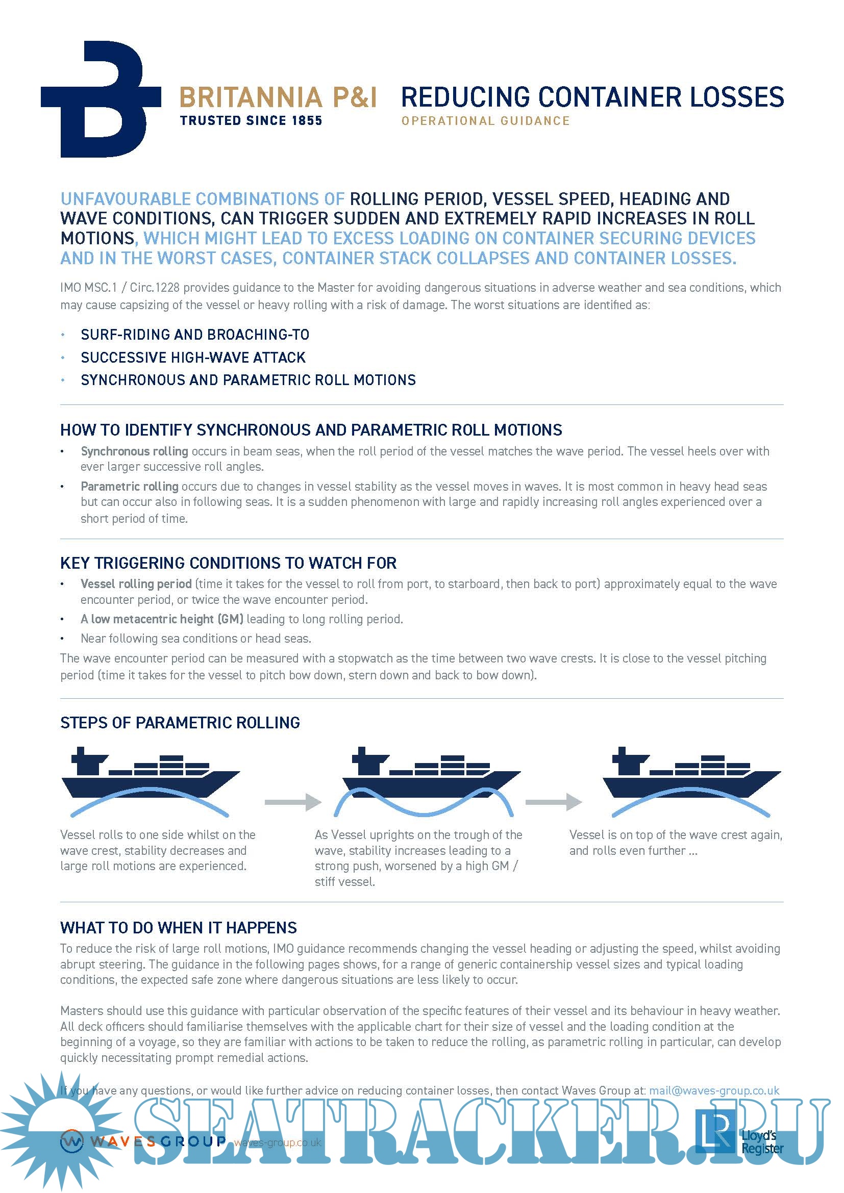 Description: has published guidelines for containerships to deal with parametric roll motions. In the guidance, Britannia explains how ships can successfully identify parametric roll and what is triggering it.