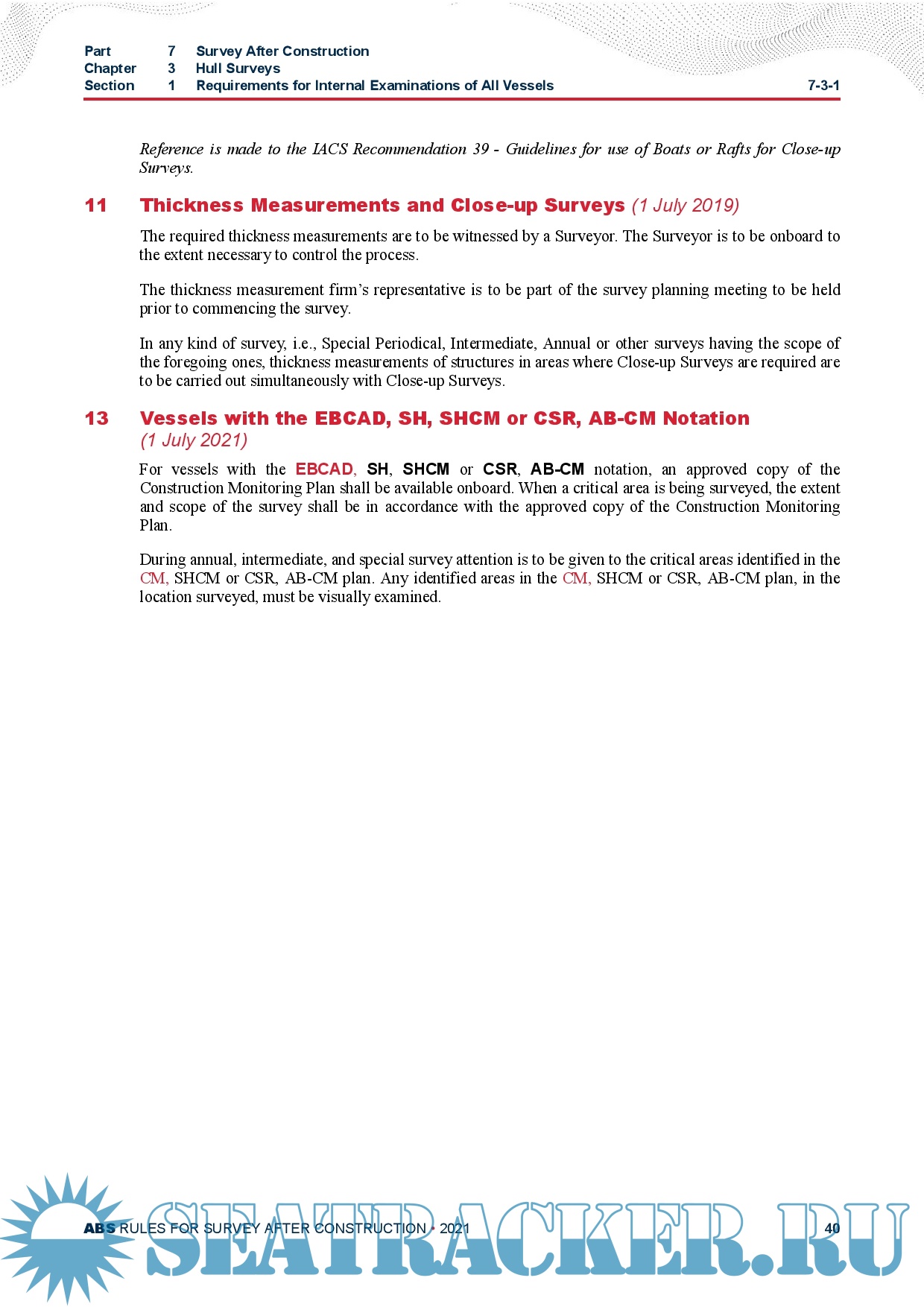 ABS - Rules for Survey After Construction - Part 7