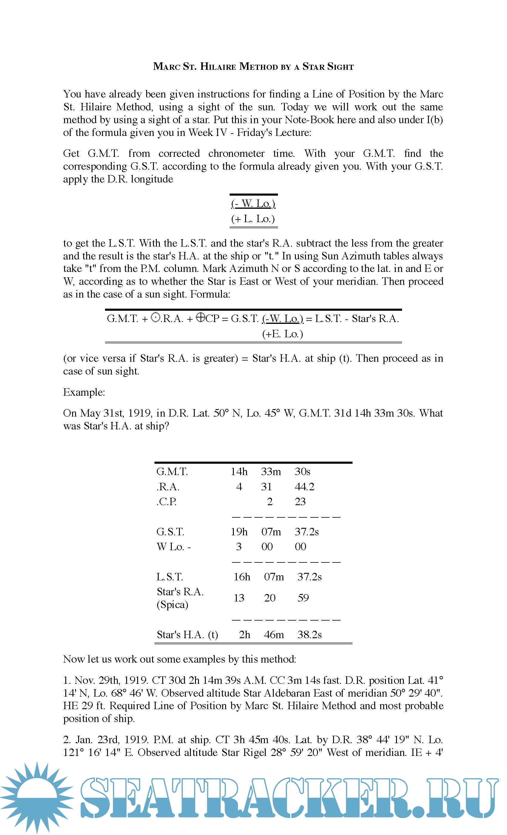 Toward the end of the course a portion of each second period will bedevoted to handling the sextant,