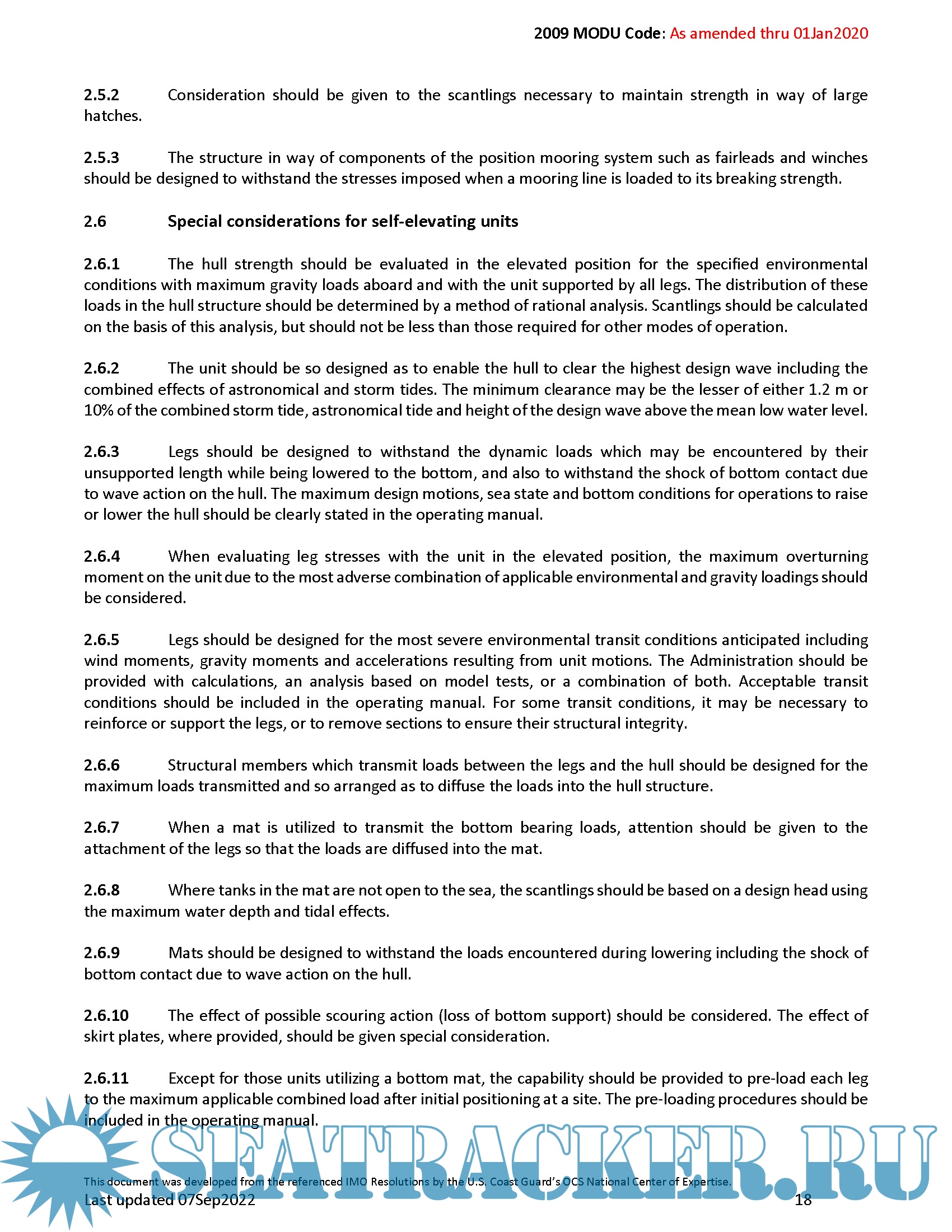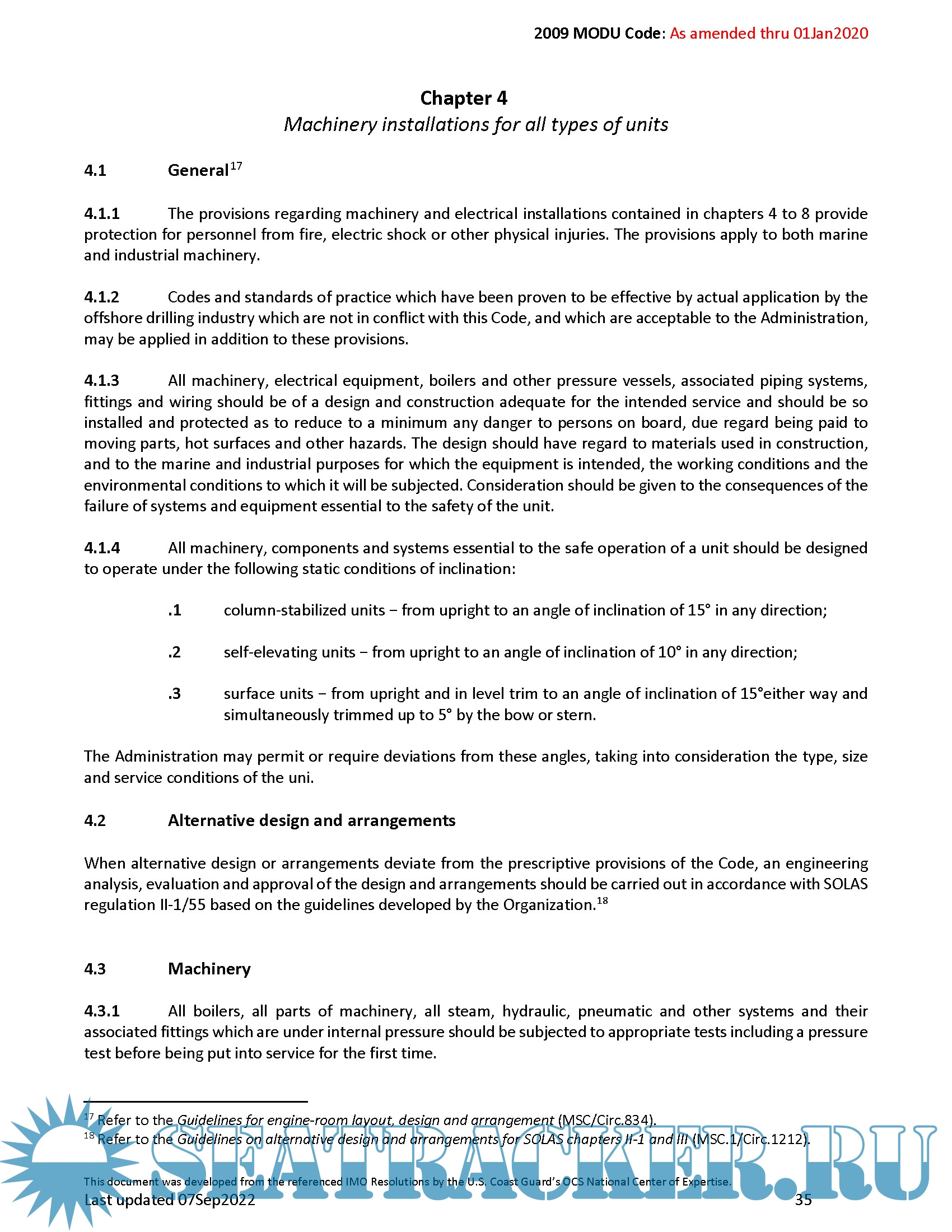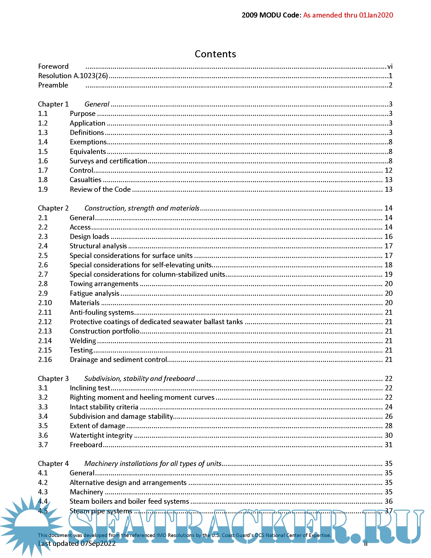 MODU code 2009 CODE FOR THE CONSTRUCTION AND EQUIPMENT OF MOBILE OFFSHORE DRILLING UNITS Edition 2020