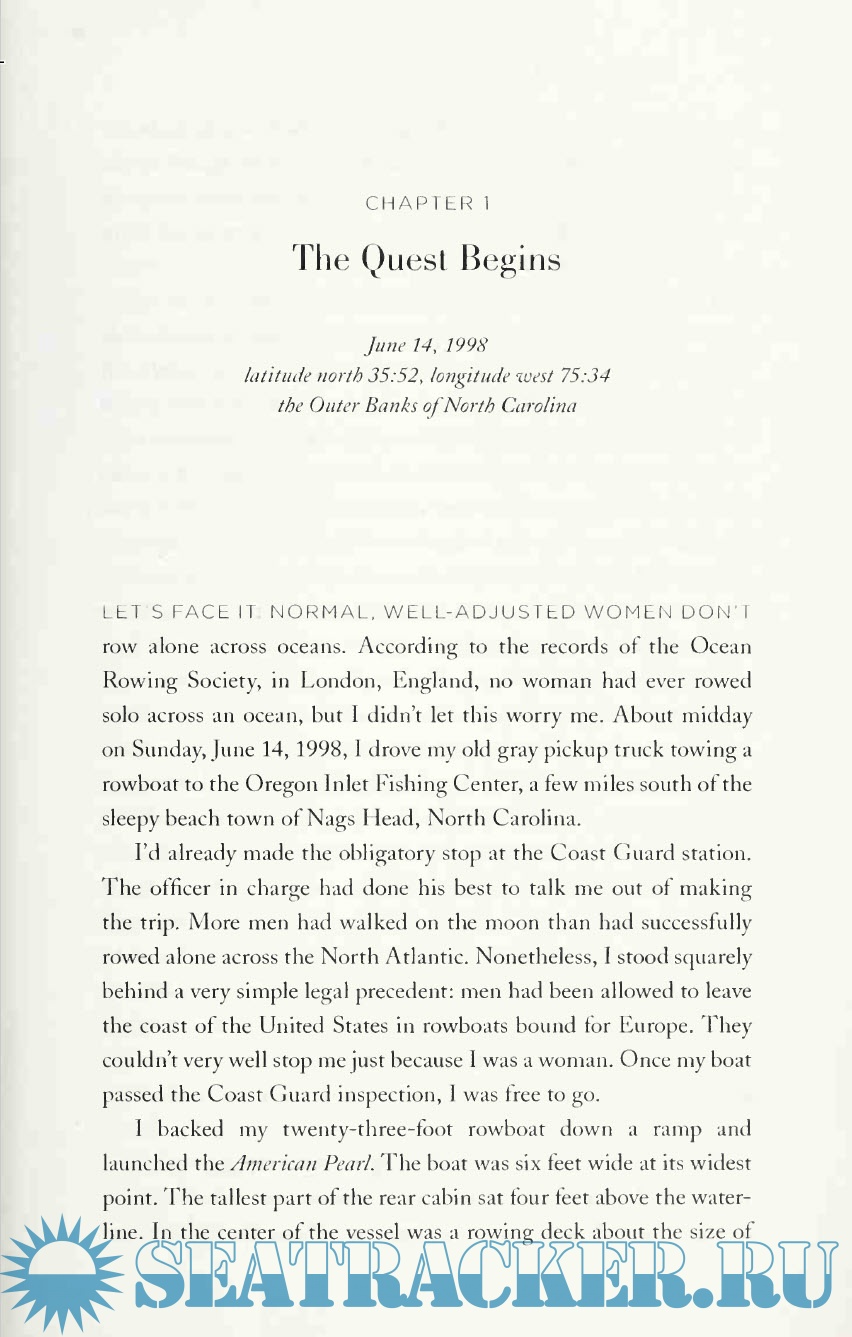 Year: 2009 Language: english Author: Tori Murden McClure Genre: Textbook Publisher: Harper Collins Edition: First ISBN: 978-0-06-171886-1 Format: PDF & EPUB Quality: Scanned pages Pages count: 306 Description: When mapmakers of the distant past came to the end of the known world, they would inscribe "Here There Be Sea Monsters". When Tori Murden McClure attempted to row solo across the Atlantic Ocean in a 23 - foot plywood boat with no motor or sail, she had no idea what kind of monsters she would find. Despite deep solitude and perilous conditions, McClure was a loner determined to prove what one person with a mission can do. But when she is brought to her knees by the worst hurricane season in the history of the North Atlantic, she must signal for help and go home in what she thinks is a disgrace. With a very sense of humor and a strong voice, McClure gives readers a true memoir of an explorer who maps her world with rare emotional honesty.