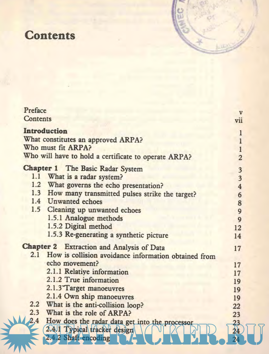 Year: 1982 Language: english Author: A.G. Bole and K.D. Jones Genre: Manual Publisher: Heineman Edition: 1 Format: PDF Quality: OCR with errors Pages count: 131 Description: The carriage of ARPA systems becomes mandatory for tankers (carrying hazardous cargoes) of more than 10,000 tons trading to the USA from July 1982, and it becomes progressively mandatory worldwide for other vessels of more than 10,000 tons from September 1984. Certification, following approved training for all Masters, Chief Mates and Officers in charge of a navigational watch on ships carrying ARPA, will probably be required. With the fitting of ARPA on ships thus increasing, and the requirement for officer training by IMCO becoming more urgent, it was felt that there was an international need for a manual ofinformation to supplement the period oftraining spent on ARPA Simulator courses. . Practical exercises will naturally predominate in these courses but since present-day ARPA is based on new and modern technology, a much wider appreciation o f the underlying principles and techniques o f operation is necessary if the full potential of the installation is to be realized. The manual follows IMCO specifications and is intended both for maritime students and for navigating and watchkeeping officers at all levels. Its use by students on ARPA courses will reduce their need for note-taking, allqwing them to spend the maximum amount oftime on practical exercises while making available to them the theory on which the practice must be based. For mariners, the manual provides material not normally covered in manufacturers' handbooks and is intended as a reference book for use at sea. It is based on the research and experience gained by the authors at sea and on the Liverpool Polytechnic ARPA Simulator.