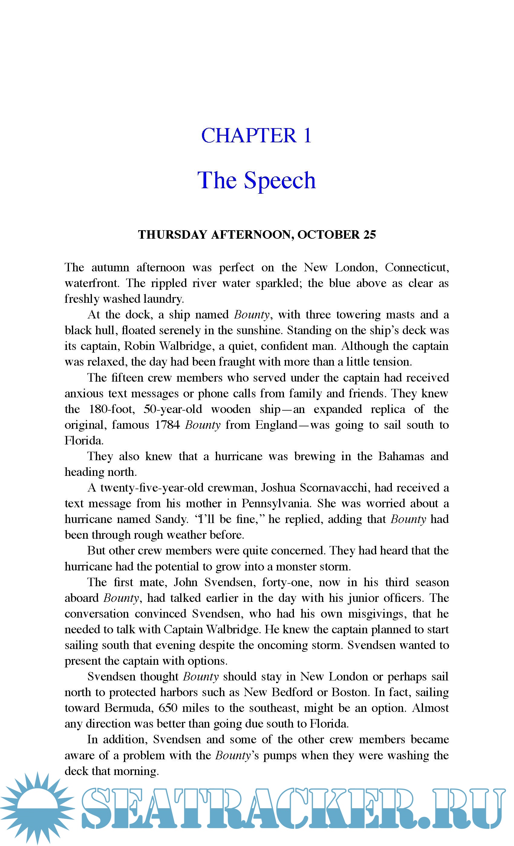 On October 23, 2012, with Superstorm Sandy fast approaching, Captain Robin Walbridge made the fateful decision to sail the HMS Bounty from New London, Connecticut to St. Petersburg, Florida, believing the wooden ship, a replica of the original, famous Bounty, would fare better at sea than at port. He told the crew that anyone who did not want to come on the voyage could leave the ship and there would be no hard feelings. No one took the captain up on his offer, and this decision would have fatal consequences.