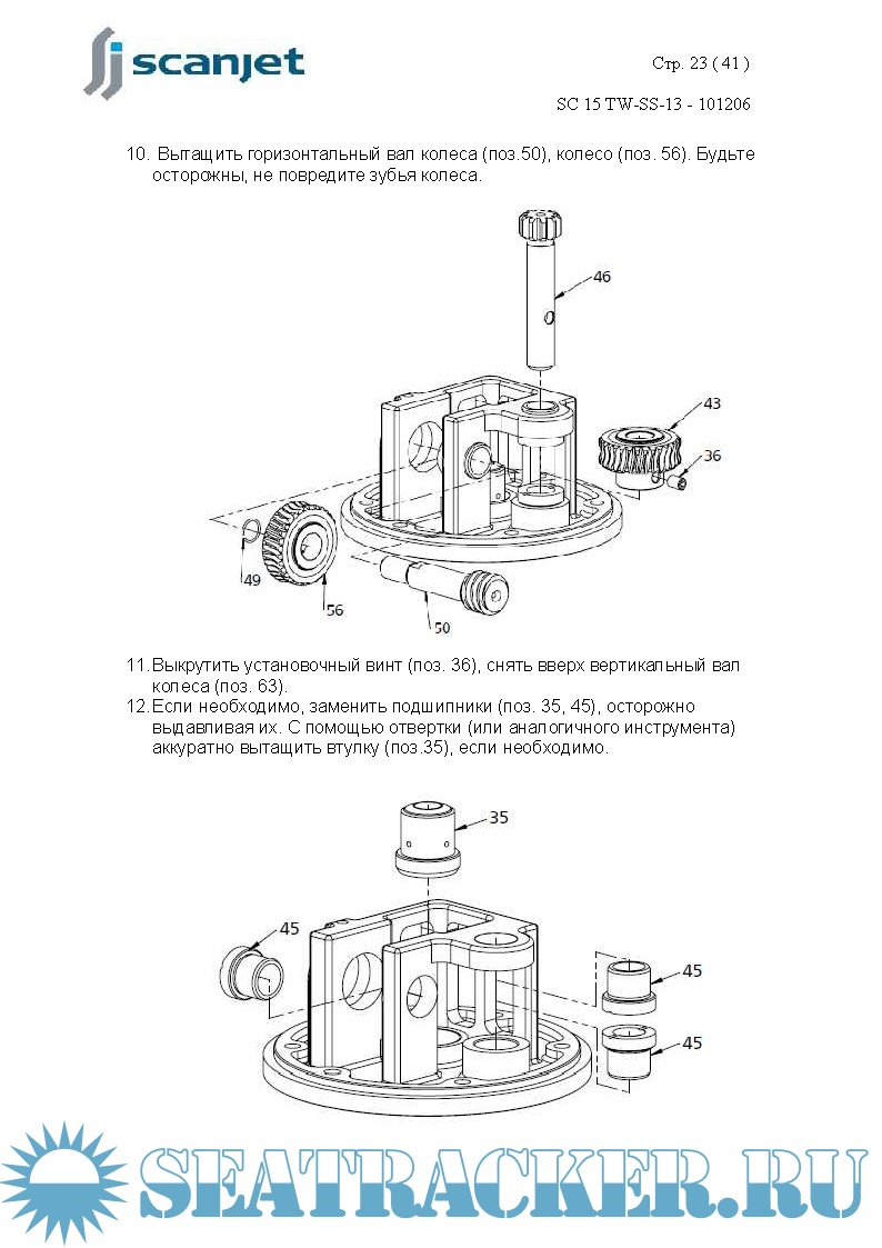 Год выпуска: 2010 Язык: русский Автор: www.scanjet.se Жанр: Инструкция Формат: PDF Качество: Изначально компьютерное (eBook) Количество страниц: 41 Описание: Машинка мойки танки SCANJET, модель SC 15TW предназначена для мойки грузовых и слоп-танков у химовозов/продуктовозов, а также других танков. Размер, конструкция и требования к мойке этих танков являются проектными данными и рассматриваются до установки машинок. Моечную машинку типа SC15 TW можно использовать как стационарную, так и как переносную. Процесс мойки начинается с открытия клапана для моющей среды. Поток воды проходит через турбину внутри машинки, и сопла будут вращаться, создавая картину мойки внутри танка. По окончании процесса мойки клапаны необходимо закрыть. Машинка SC15 TW стандартно поставляется с двумя или четырьмя соплами, размер сопла от Ø6 мм до Ø 10 мм. Данная инструкция была подготовлена для содействия персоналу, который будет эксплуатировать и обслуживать моечные машинки. Ключ для продолжительного срока службы машинки – качественное регулярное обслуживание. Машинка выполняет грубую и грязную работу для вас. Качественный уход за машинками SC15 TW продлит срок их службы.