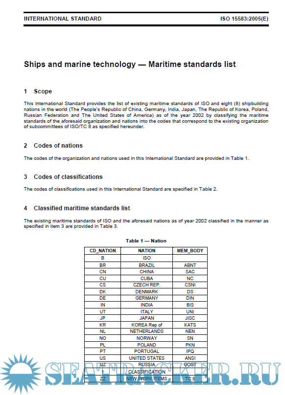Ships and marine technology — Maritime standards list ISO:15583