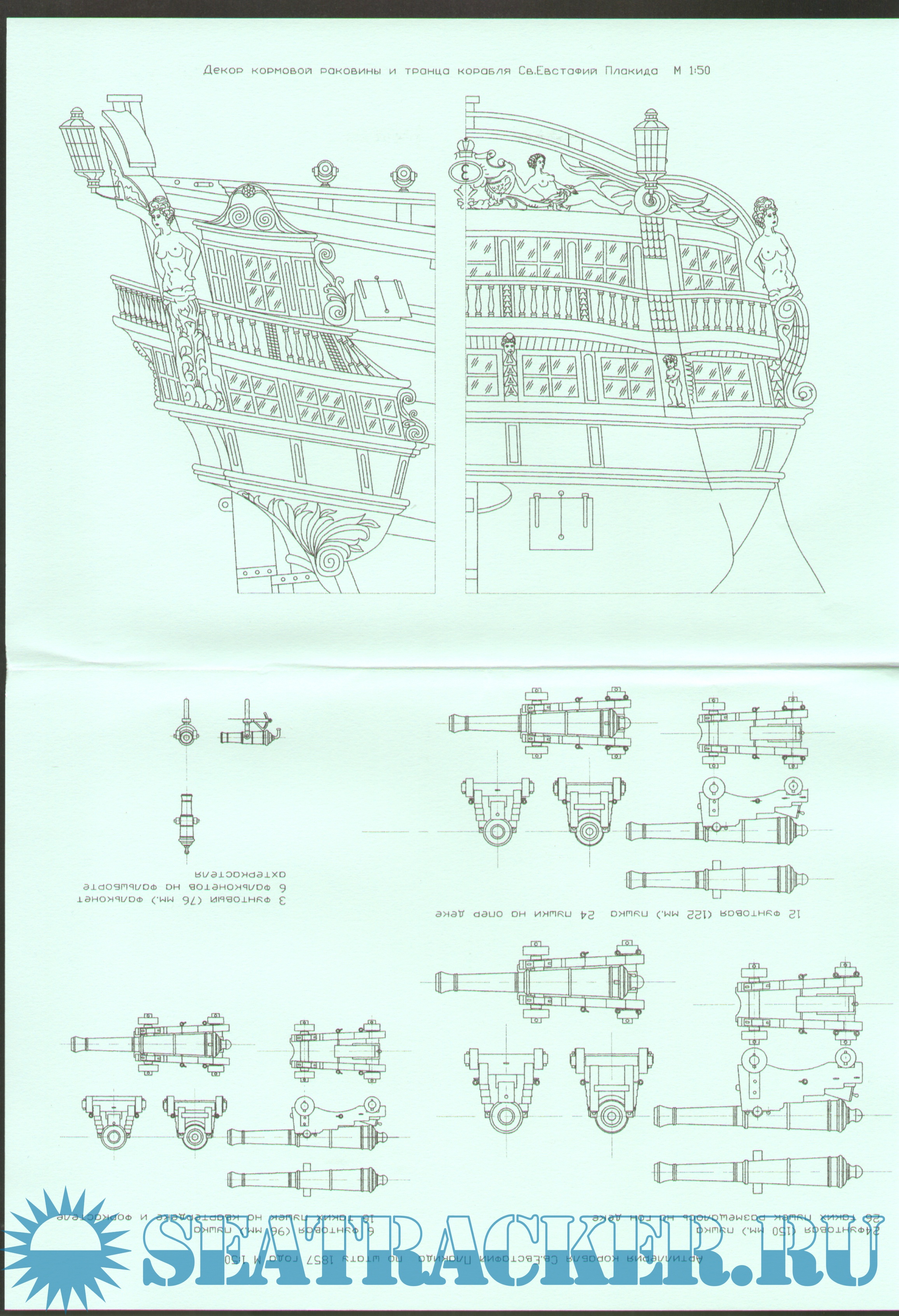 18 листов чертежей 66 пушечного корабля ''Святой Евстафий Плакида'' в масштабе 1:100Скриншоты