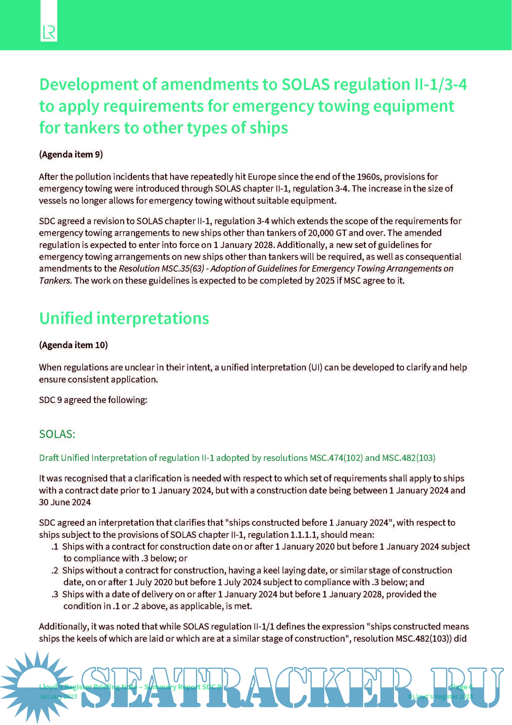 LR Summary Report for the IMO Ship Design and Construction Ninth session (SDC 9)