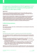 Year: 2023 Language: english Author: Lloyd's Register Genre: Normative document Format: PDF Quality: eBook Pages count: 11 Description: Below are some of the topics which were discussed at SDC 9 and will have some impact on current requirements: • Draft revised performance standards for water level detectors on bulk carriers and single hold cargo ships other than bulk carriers were agreed (Agenda Item 12). The amendments clearly state the differences between installation height requirements of alarm sensors and bilge level sensors. • The review of the Guidelines for the reduction of underwater noise (MEPC.1/Circ.833) was finalised (Agenda Item 5). The next steps include identifying primary contributors to underwater noise generated by ships, a general approach that designers, shipbuilders, shipowners and ship operators can undertake, and provision of an underwater noise reduction management planning tool. • Agreed draft Unified Interpretations are: (Agenda Item 10) − Interpretation of regulation II-1 adopted by resolutions MSC.474(102) and MSC.482(103) to explain what regulations apply to ships with a contracted date before 1 Jan 2024 but a keel laying date between 1 Jan 2024 and 30 June 2024; − Interpretation of regulation II-1/13.2.3 – testing and type approval of heat-sensitive piping penetrating watertight bulkheads on passenger ships to maintain watertight integrity. • Revision of the Safe Return to Port (SRtP) interim explanatory notes (Agenda Item 11). The industry has been gathering experience since the MSC Circular has been adopted. Some areas of improvements, especially around single voyages exceeding SRtP range, crew operation and the use of gas as fuel or other low-flash point fuels, on passenger ships have been thoroughly discussed. It was agreed that MSC.1/Circ.1369 can be revised and this work will be undertaken by a Correspondence Group. Additional details can be found under the relevant subject headings in the document.