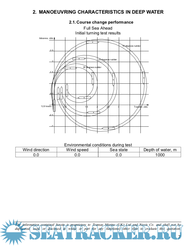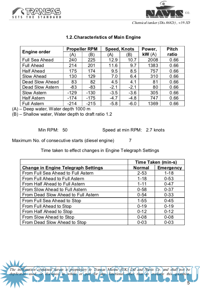 Description: Manoeuvring booklets: Ship particulars, characteristisc of main engine, course change performance, etc.