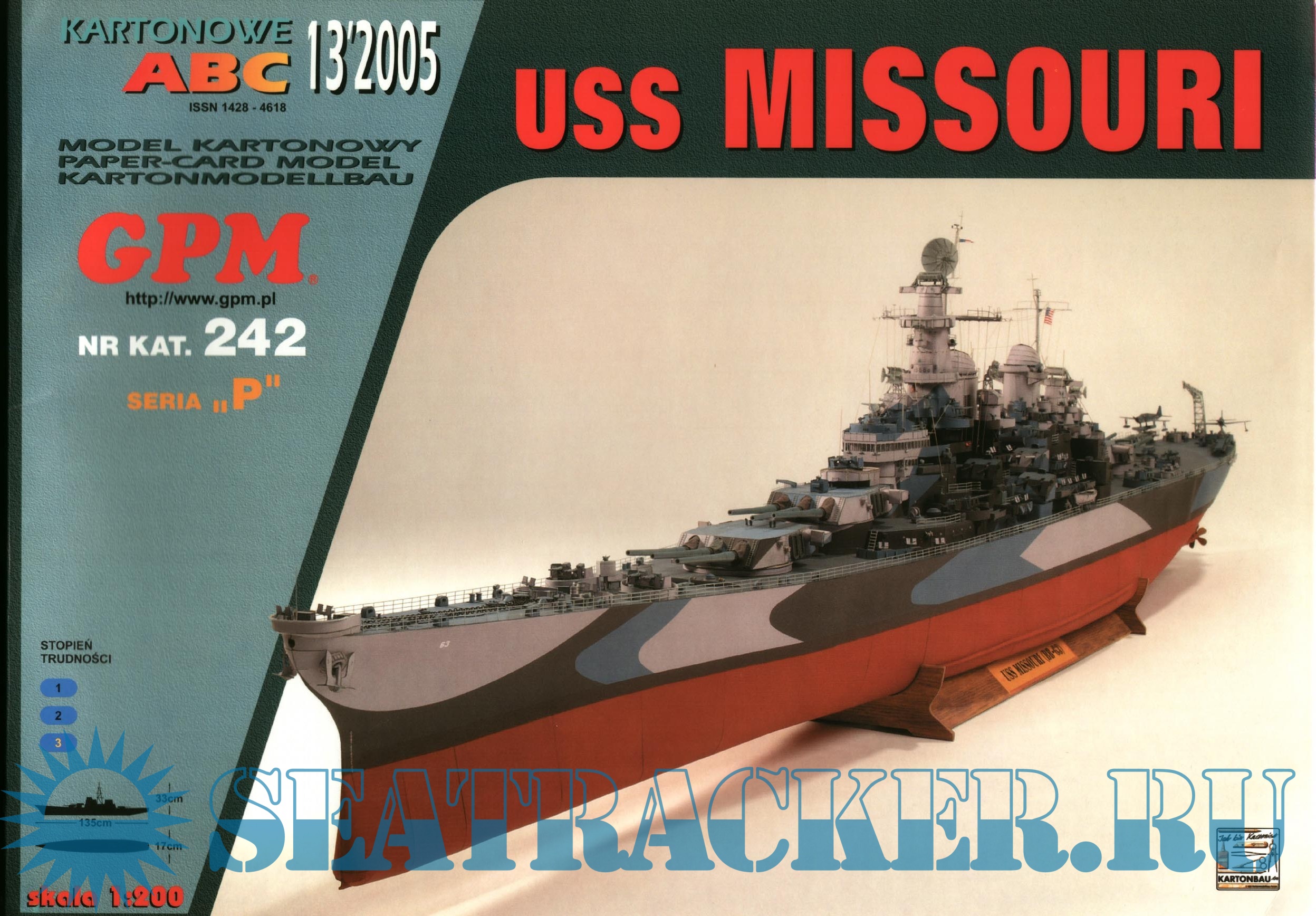Описание: 55 листов цветных выкроек и схем сборки для создания модели из бумаги в масштабе 1:200 линейного корабля ВМС США MISSOURI