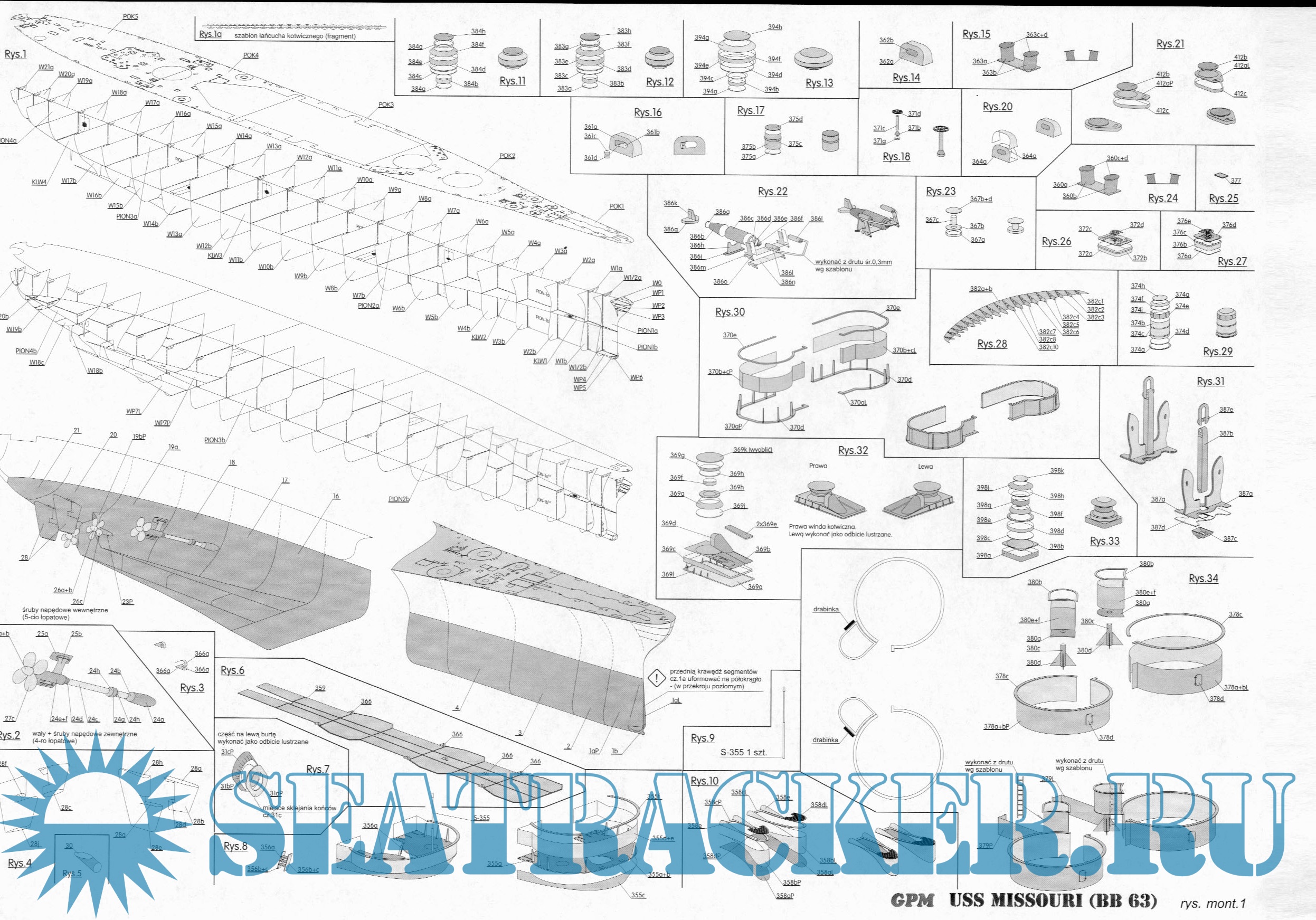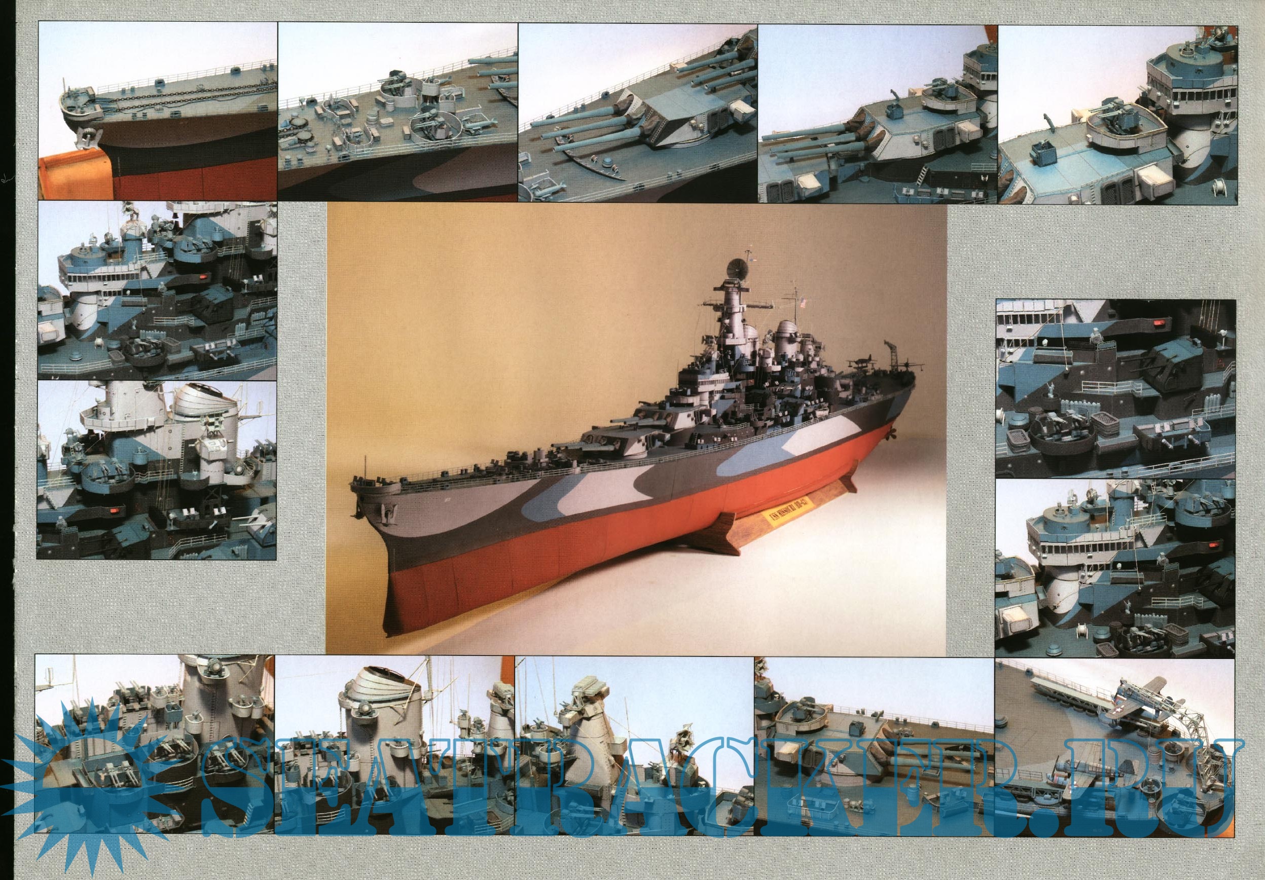 55 листов цветных выкроек и схем сборки для создания модели из бумаги в масштабе 1:200 линейного корабля ВМС США MISSOURIСкриншоты